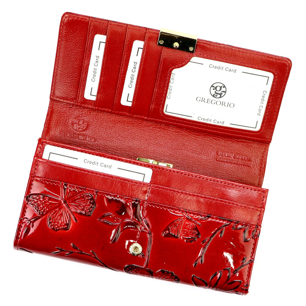 Portfel zamykany jest na solidny zatrzask, co gwarantuje szybki i wygodny dostęp do zawartości, jednocześnie zapewniając bezpieczeństwo przechowywanych przedmiotów. Jest to dodatek, który łączy estetykę z praktycznością, doskonale sprawdzając się w codziennym użytkowaniu.