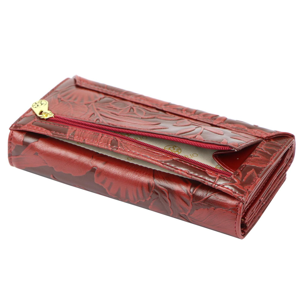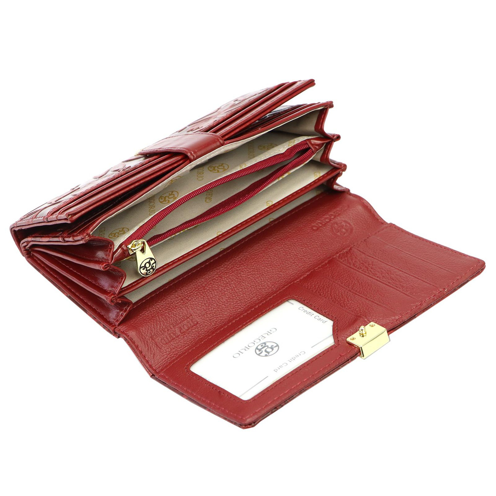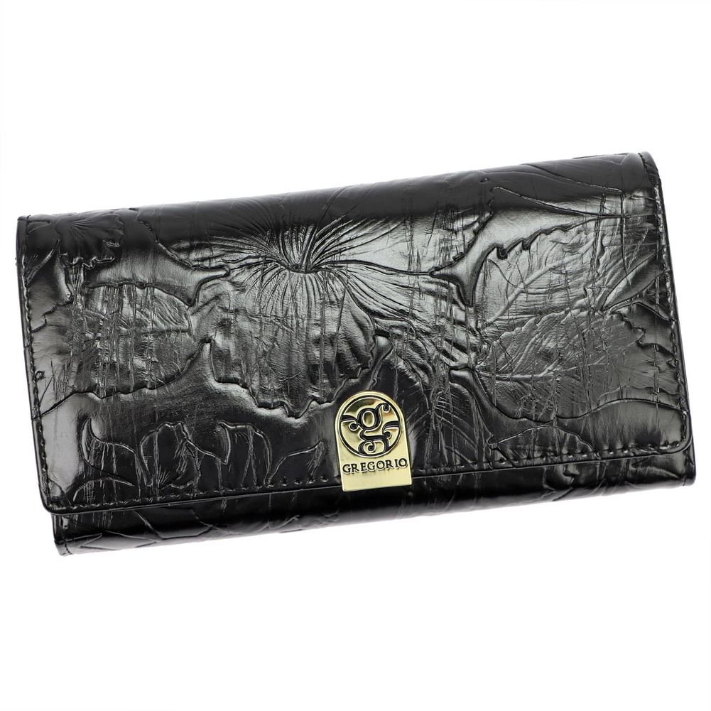 Portfel zamykany jest na solidny zatrzask, co gwarantuje szybki i wygodny dostęp do zawartości, jednocześnie zapewniając bezpieczeństwo przechowywanych przedmiotów. Jest to dodatek, który łączy estetykę z praktycznością, doskonale sprawdzając się w codziennym użytkowaniu.
