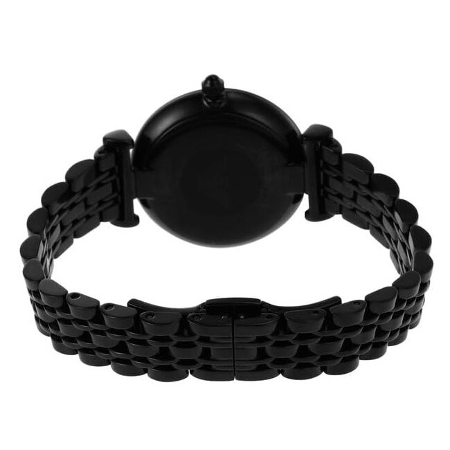 Damski zegarek Emporio Armani AR11245 z serii Gianni T-Bar to elegancki damski zegarek idealny na każdą okazję. Koperta oraz bransoleta zostały wykonane ze stali szlachetnej z powłoką PVD w kolorze czarnym, co gwarantuje wieloletnią odporność na zniszczenie i odbarwienia. Model posiada dokładny mechanizm kwarcowy zasilany baterią. Czarną tarczę zdobioną srebrnymi cyrkoniami zabezpiecza odporne na zarysowania szkło mineralne.