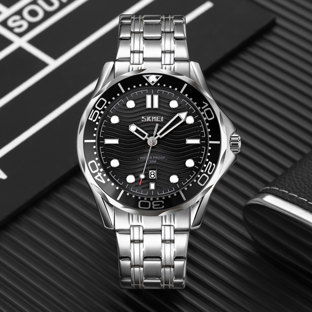 Od teraz luksusowy design możesz mieć na swoim nadgarstku. Model Skmei 9276 designem przypomina zegarki z linii Omega Seamaster, szczególnie ze względu na podobny kształt koperty, falisty wzór na tarczy oraz czytelny bezel. To doskonała opcja dla tych, którzy szukają eleganckiego zegarka w przystępnej cenie, z wyglądem inspirowanym renomowanymi czasomierzami.