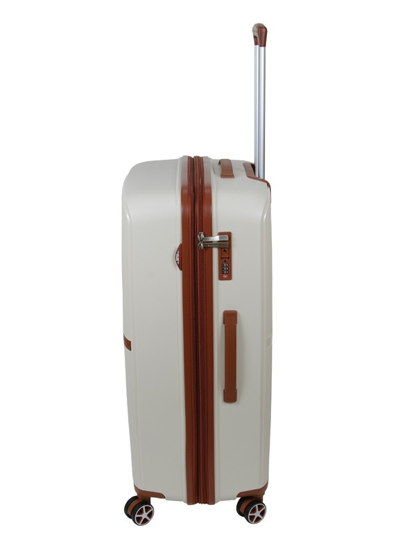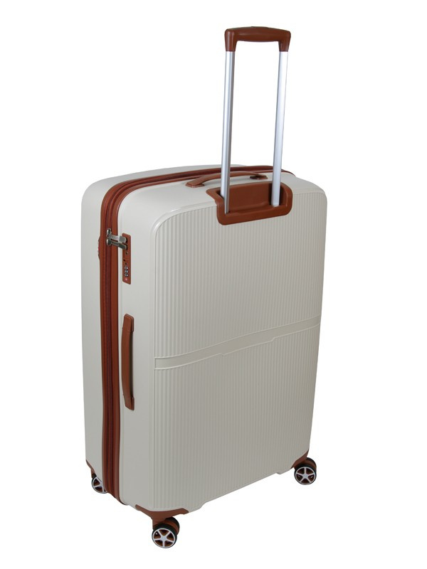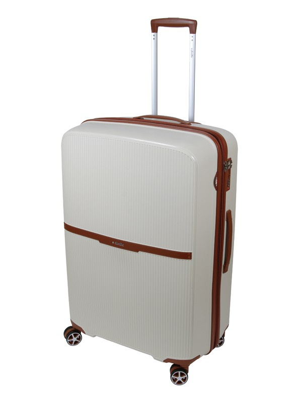 Duża walizka włoskiej marki Dielle z kolekcji 190. Korpus wykonany z polipropylenu. Wygodne uchwyty z boku i u góry ułatwiają umieszczenie jej w bagażniku auta lub zdjęcie z lotniskowego transportera. Cztery podwójne, osiowo obrotowe kółka gwarantują komfort przemieszczania się.  Wysuwany teleskopowo , regulowany stelaż. Przewożoną zawartość chroni zamek szyfrowy w standardzie TSA. Dodatkowym atutem tej kolekcji jest możliwość poszerzenia walizki o około 5 centymetrów dzięki specjalnemu suwakowi. Wnętrze wyłożone elegancką podszewką, jedna część wyposażona w pasy do mocowania przewożonego bagażu a druga część wydzielona materiałową przegrodą z dodatkowymi kieszeniami. Walizka charakteryzuje się wyjątkowym wyglądem oraz jakością wykonania.