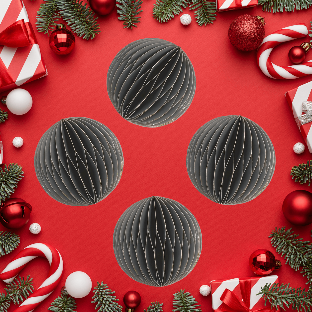 Zestaw 4 bombek papierowych składanych 7cm – elegancka szarość