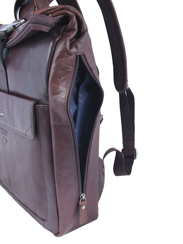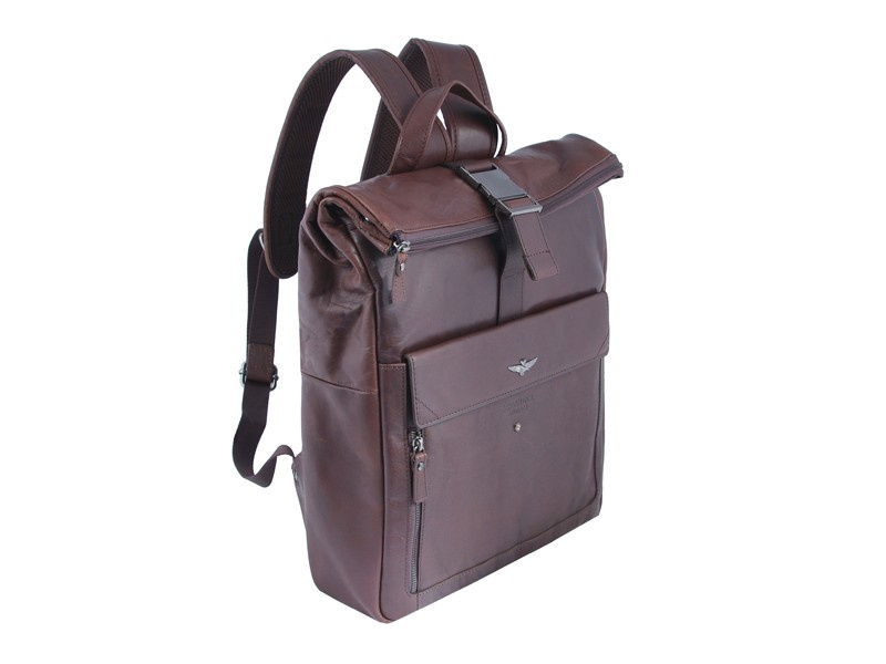 Plecak miejski typu rolltop włoskiej marki Aeronautica Militare z kolekcji Vintage. Wykonany z wysokiej jakości skóry naturalnej. Przeznaczony dla osób ceniących niepowtarzalny komfort i styl. Plecak jednokomorowy. Pojedyncza komora główna o dużej pojemności zapinana na zatrzaski i suwak. Od góry rolowana do potrzebnej wysokości , zapinana na klamrę. Z przodu pod klapą znajduje się duża kieszeń pozioma zapinana na zatrzaski. W środku znajduje się elegancka podszewka. Do noszenia na plecach służą wygodne, regulowane szelki. Do noszenia w ręku - uchwyt w górnej części. Metalowe detale z charakterystycznym logo oraz wytłoczony napis Aeronautica Militare stanowią stylowy akcent przyciągający uwagę. Plecak zaprojektowany w praktyczny i funkcjonalny sposób cechuję się niewielką wagą i starannym wykończeniem.Bezpieczeństwo - rodzaj ostrzeżenia