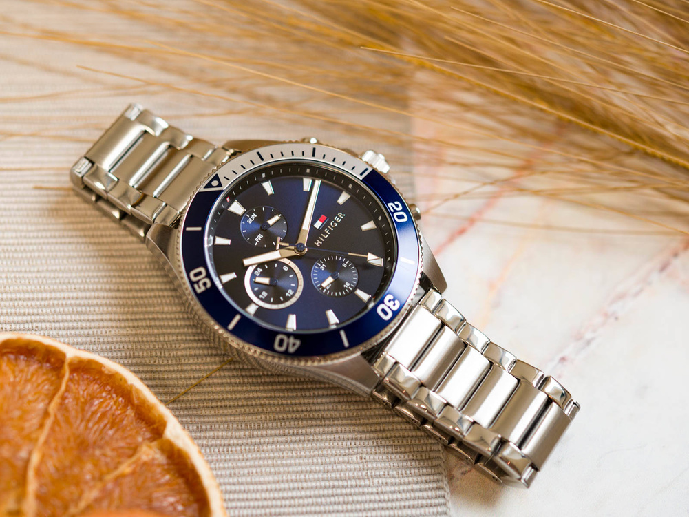 Zegarek Tommy Hilfiger LARSON 1791917 to klasyczny i ponadczasowy model w kolorze srebrnym z elegancką niebieską tarczą. Koperta oraz bransoleta wykonane są ze stali szlachetnej. Model 1791917 posiada rozbudowany datownik oraz czas dobowy. Tarcza chroniona szkłem mineralnym, a solidny pasek wykonany z naturalnej skóry. Wodoszczelność zegarka to 5ATM.