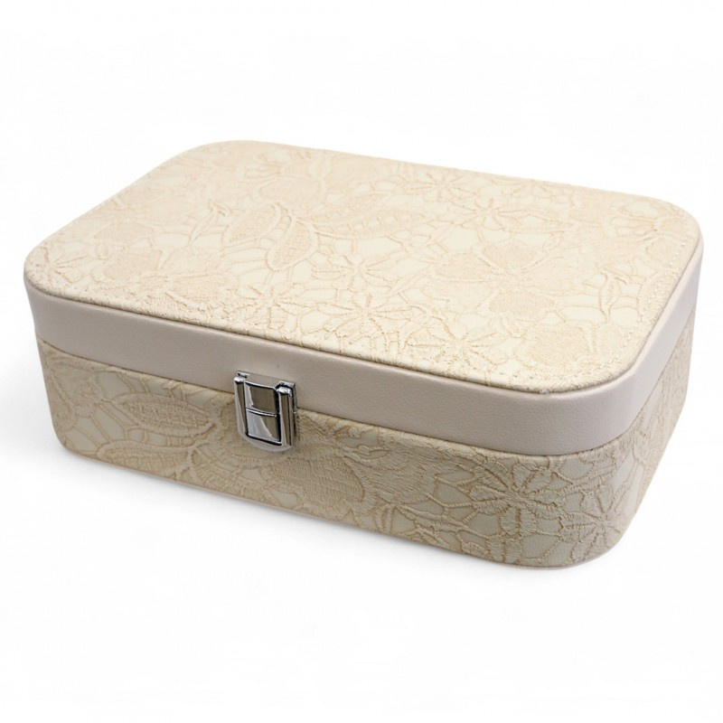 Szkatułka na biżuterię, etui, organizer, pudełko kremowa koronka PD157K
