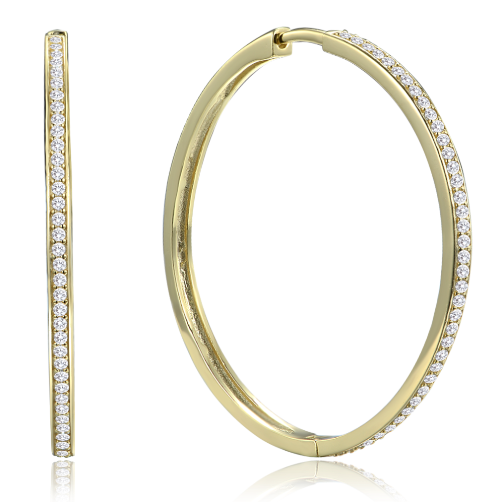 MINET Pozłacane srebrne kolczyki kwadratowe koła 4 cm z białymi cyrkoniami