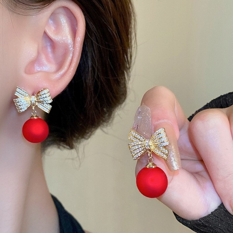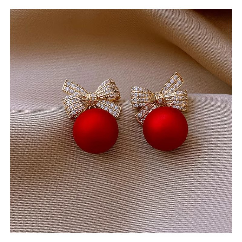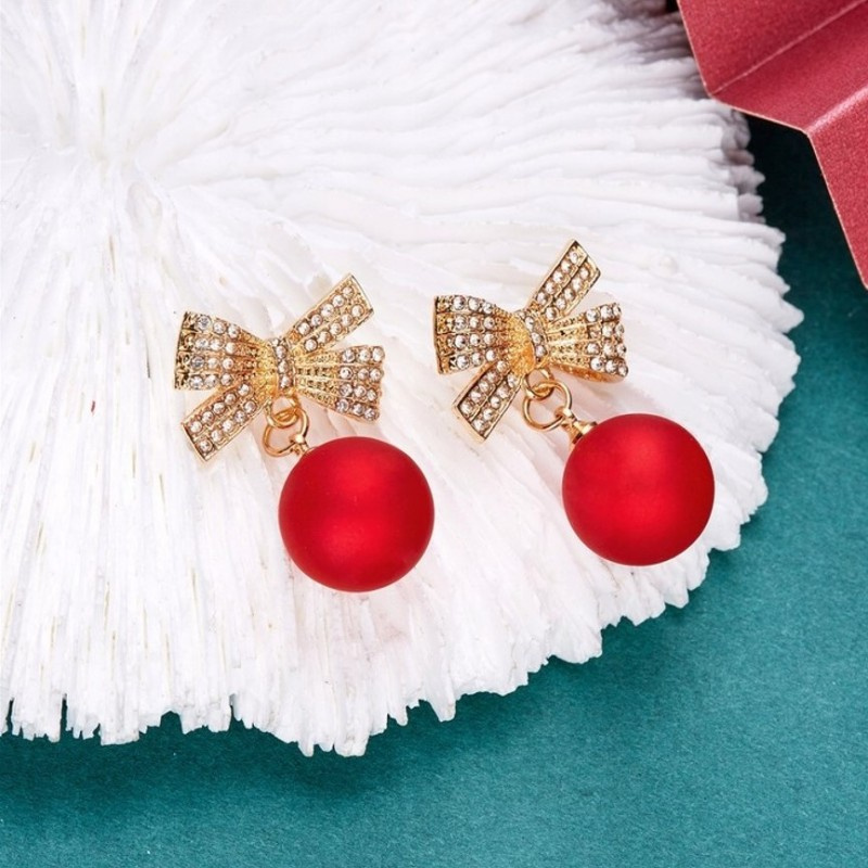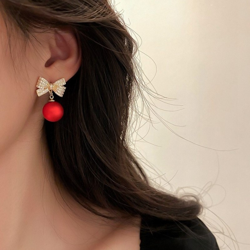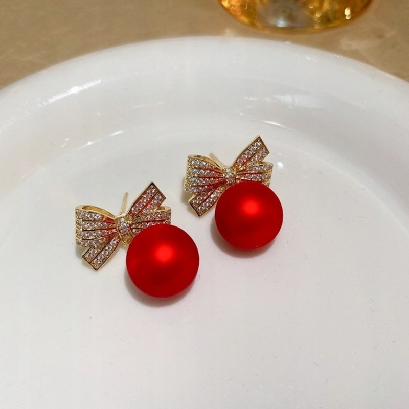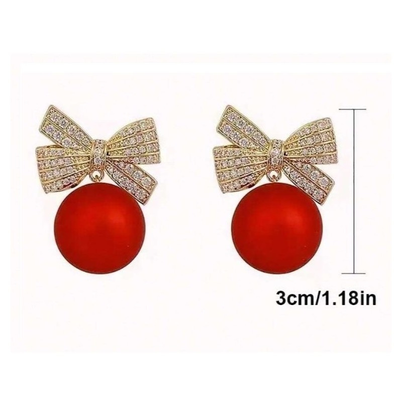 Kolczyki sztuczne czerwone kule z kokardkami Będą stanowić piękne uzupełnienie eleganckiej kreacji jak i codziennego stroju.