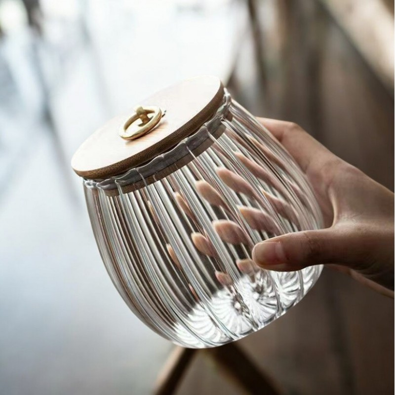 Cukiernica szklana ryflowana 700ml Poznaj elegancką cukiernicę z falowanymi ściankami o pojemności 700 ml – idealny pojemnik na cukier, sól, zioła lub inne produkty.
