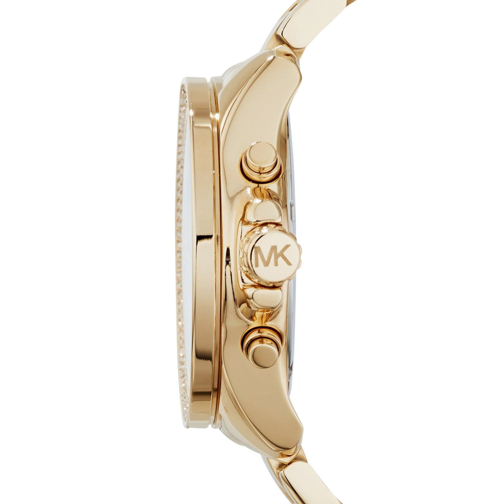 Zegarek damski Michael Kors MK6095 przeznaczony jest dla kobiet które cienią sobie wyróżniające się dodatki. Koperta zegarka MK6095 wykonana została ze stali szlachetnej w kolorze złotym zdobiona cyrkoniami. Tarcza w kolorze złotym zdobiona cyrkoniami chroniona mineralnym szkiełkiem, na której znajduje się chronograf odmierzający czas oraz datownik. Zegarek MK6095 został wyposażony w precyzyjny mechanizm kwarcowy.