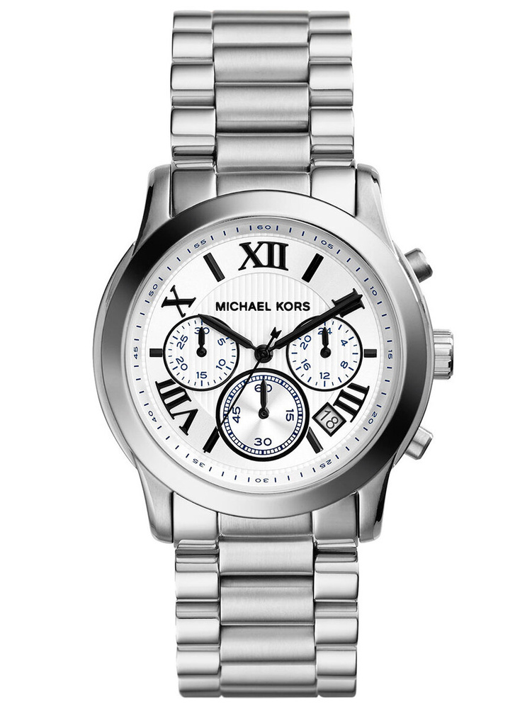 Model Michael Kors MK5928 to zegarek na stalowej bransolecie w kolorze srebrnym. Oznaczenia godzinowe w postaci cyfr rzymskich świetnie komponują się z białą tarczą i wskazówkami. Wyposażony jest w precyzyjny mechanizm kwarcowy, dzięki któremu zegarek dokładanie pokazuje aktualną godzinę.