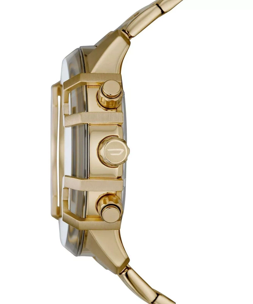 Zegarek Diesel Griffed DZ4573 to wybór dla mężczyzn, którzy cenią sobie wyraziste akcenty w złotym kolorze. Jego elegancka konstrukcja obejmuje okrągłą kopertę oraz bransoletę ze stali nierdzewnej, odpornej na korozję, a także analogowy cyferblat chroniony szkiełkiem mineralnym. Na tarczy znajdziesz datownik oraz subtarcze dla chronografu. Koronka i przyciski do obsługi funkcji komplikacji znajdują się po lewej stronie koperty. Z wodoodpornością na poziomie 50 metrów zegarek jest odporny na zachlapania, co zapewnia ochronę mechanizmu kwarcowego.