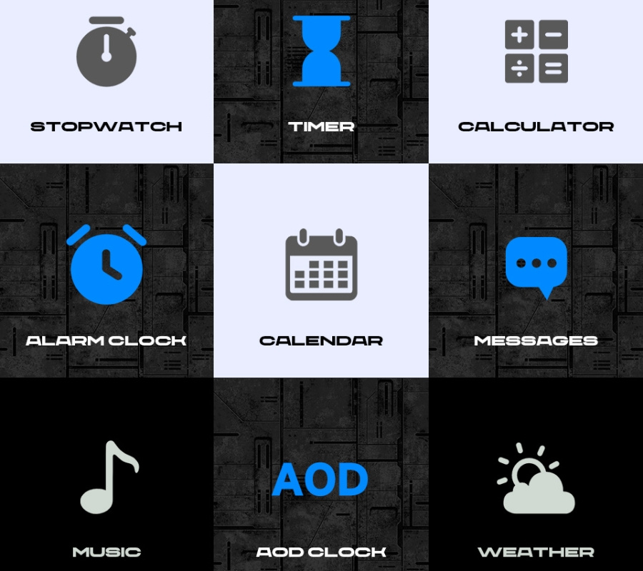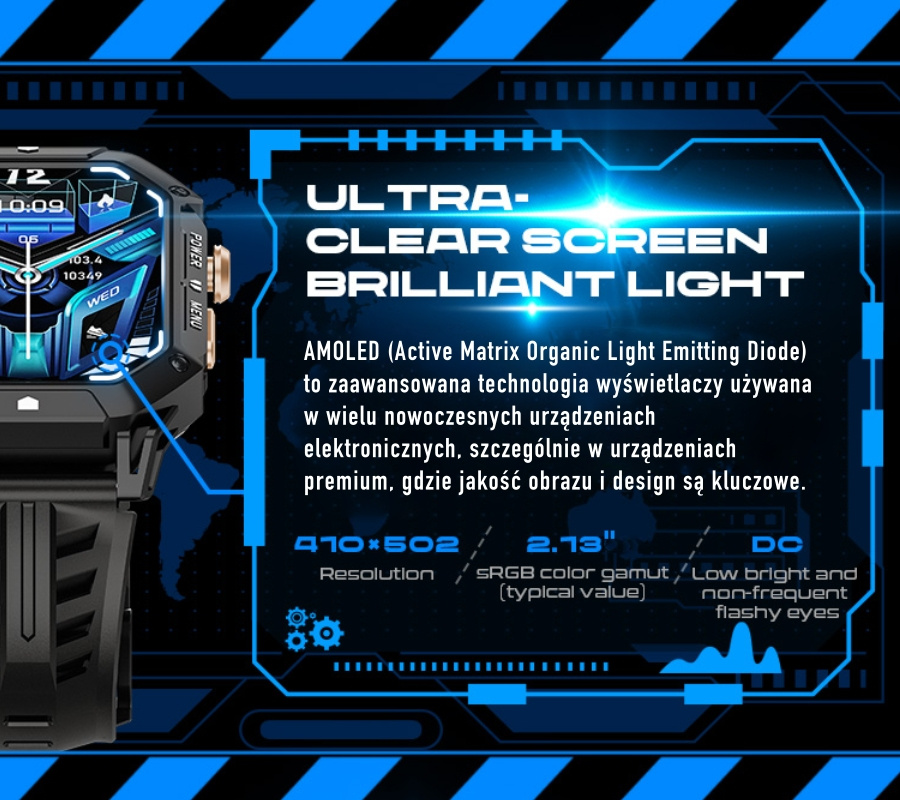 - NOWOŚĆ! - ALWAYS ON DISPLAY !!! ( Funkcja ta polega na stałym wyświetlaniu na ekranie smartwatcha w trybie czuwania zegara , 2 tryby - zegar analogowy lub cyfrowy , możliwość wł/wył. funkcji )