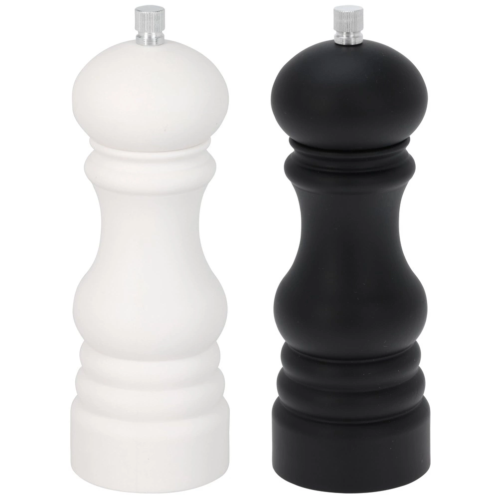 - Zestaw składający się z młynków do mielenia pieprzu oraz soli. Młynki w kolorze czarnym i białym dla wygody korzystania. Świetnie prezentują się na stole.