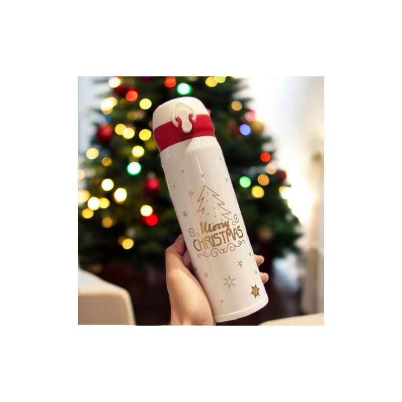 KUBEK TERMICZNY, BIDON 500ML TERMOS ŚWIĄTECZNY ZIMOWY biały BD39B