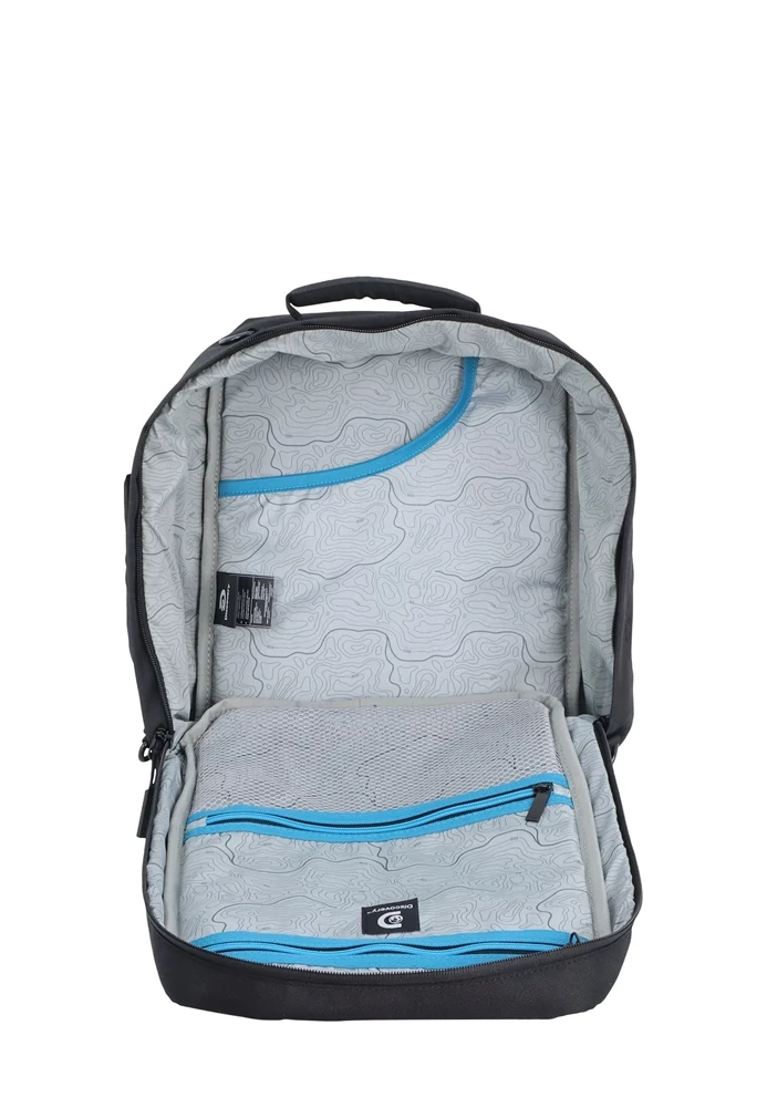 Plecak Discovery Andes D00403 wykonany jest z nowoczesnej tkaniny o nazwie Oxford - charakteryzuje się wodoodpornością - pokryta jest jednostronnie (po stronie lewej) bezbarwnym poliuretanem, a po stronie prawej bezbarwną powłoką, która odpycha wodę. Tkanina Oxford jest również bardzo wytrzymała na przetarcia, otarcia oraz rozciąganie, a jednocześnie jest miękka i przyjemna w dotyku. Przy projektowaniu plecaka kierowano się myślą o jak największej satysfakcji z jego użytkowania i zapewnieniu maksymalnej funkcjonalności zachowując minimalną masę (0,64 kg) przy maksymalnej pojemności (24l) i ponadczasowym oraz modnym wyglądem.