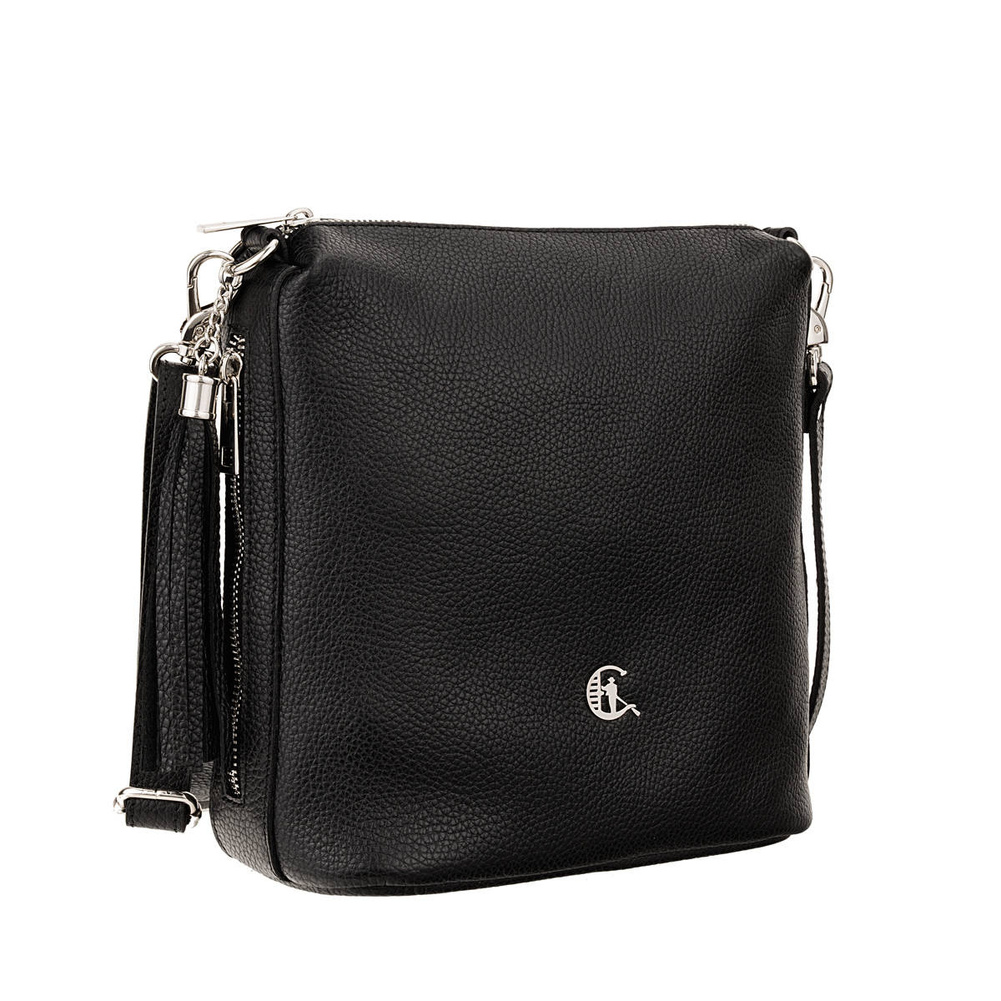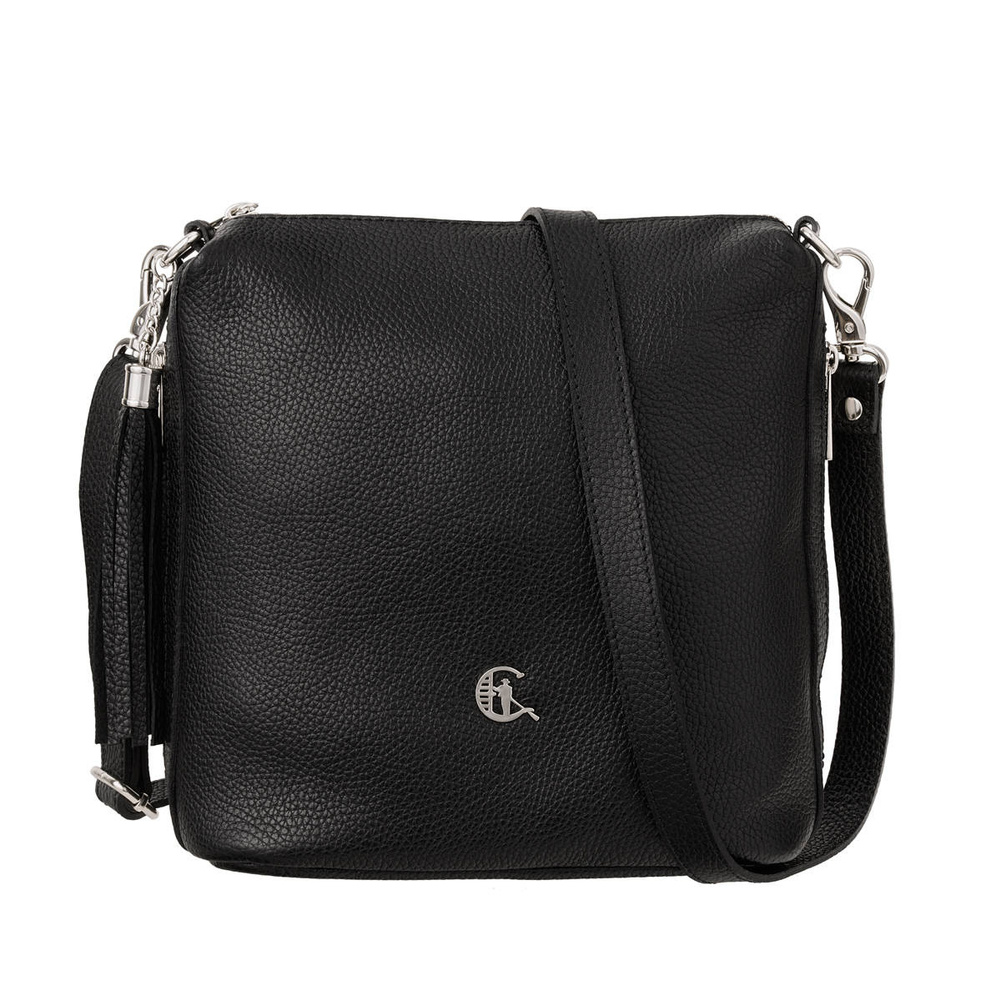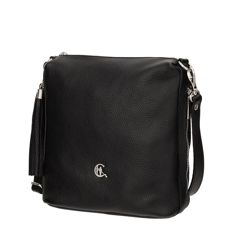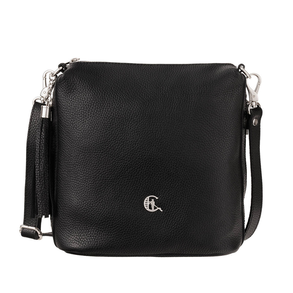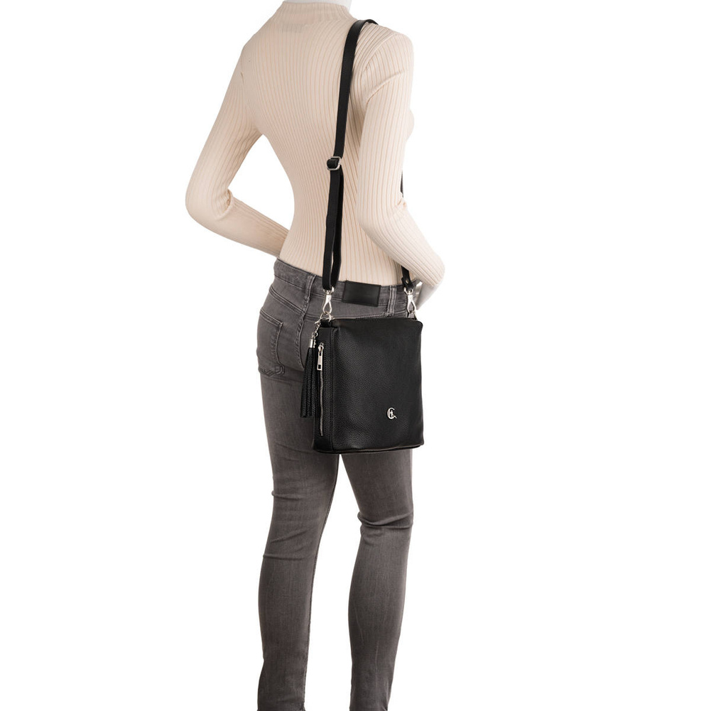 - Odkryj czarną torebkę Canaletto ze skóry groszkowanej z ozdobnym frędzlem, srebrnymi detalami i regulowanym paskiem. Funkcjonalna i stylowa – idealna na co dzień!