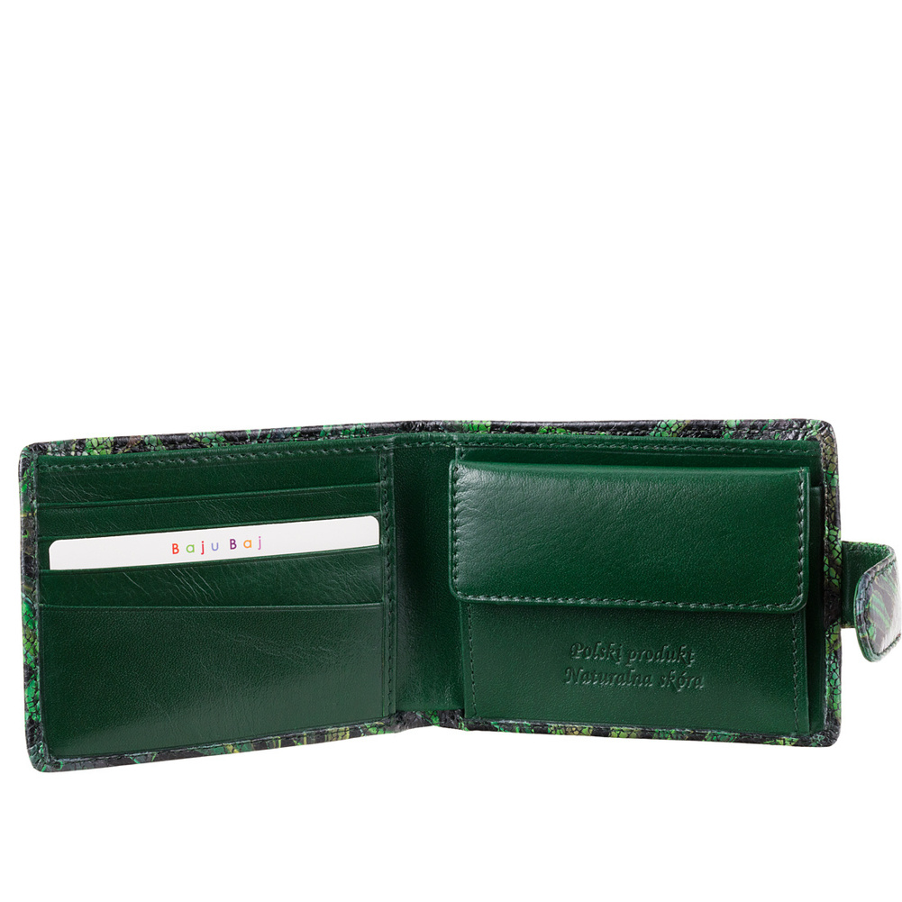 - Poznaj damski portfel BajuBaj z kolorowej, zielonej skóry naturalnej. Miejsce na 6 kart, kieszeń na banknoty, kieszonka na drobne i ochrona RFID – idealny wybór na co dzień!