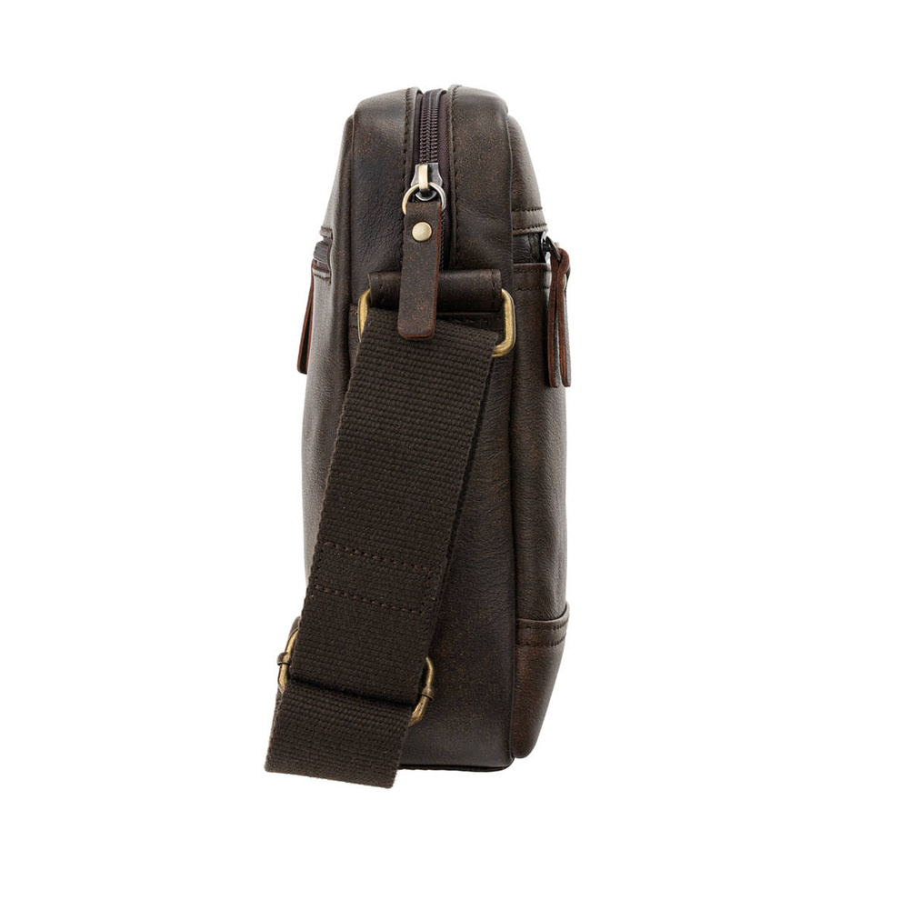 - Wybierz męską torebkę w stylu vintage – naturalna skóra postarzana, regulowany parciany pasek, kieszenie i wykończenia w odcieniu starego złota. Styl i funkcjonalność na co dzień!