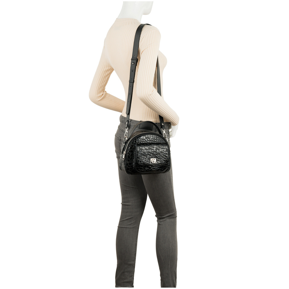 - Długi, regulowany pasek daje możliwość noszenia kuferka na ramieniu lub jako crossbody.