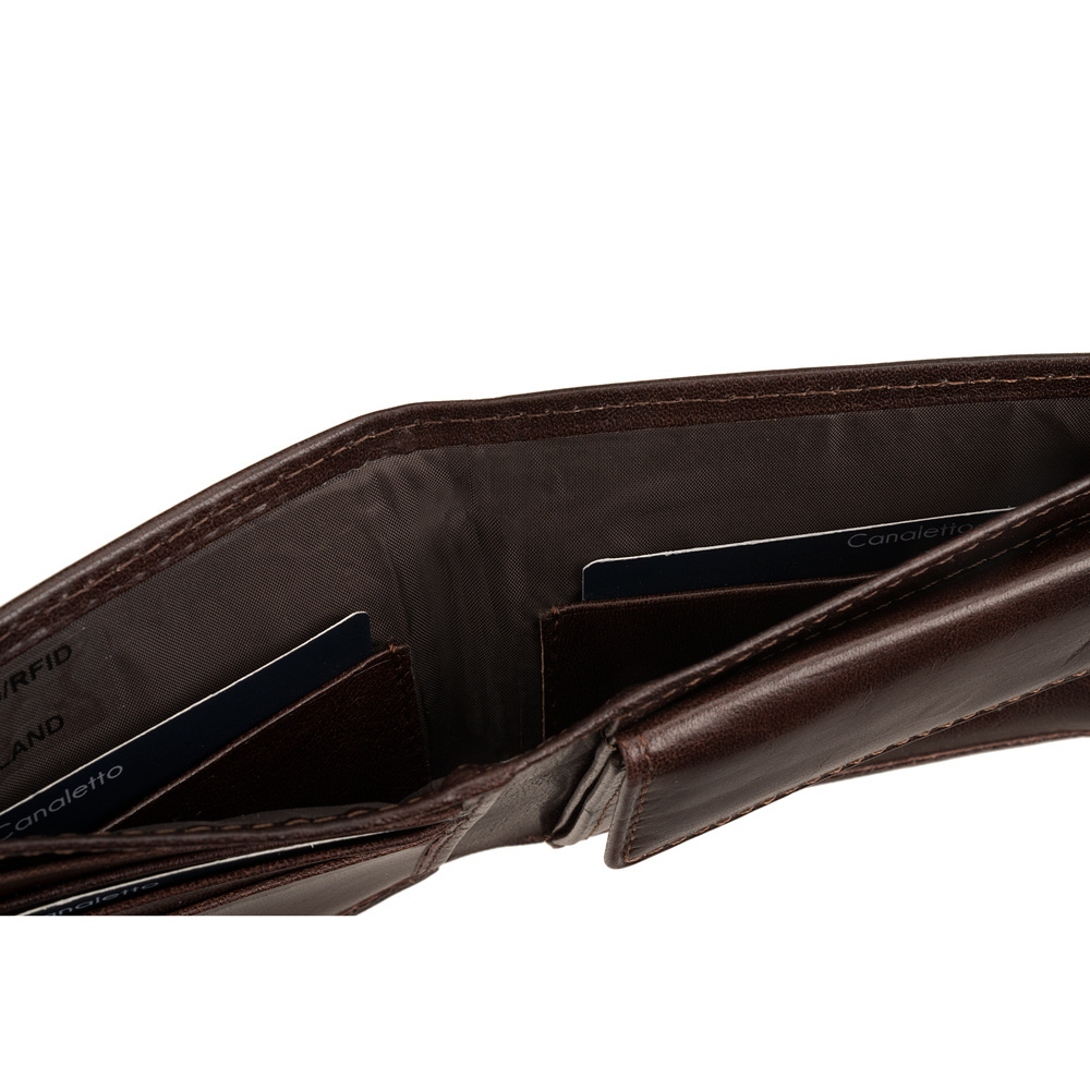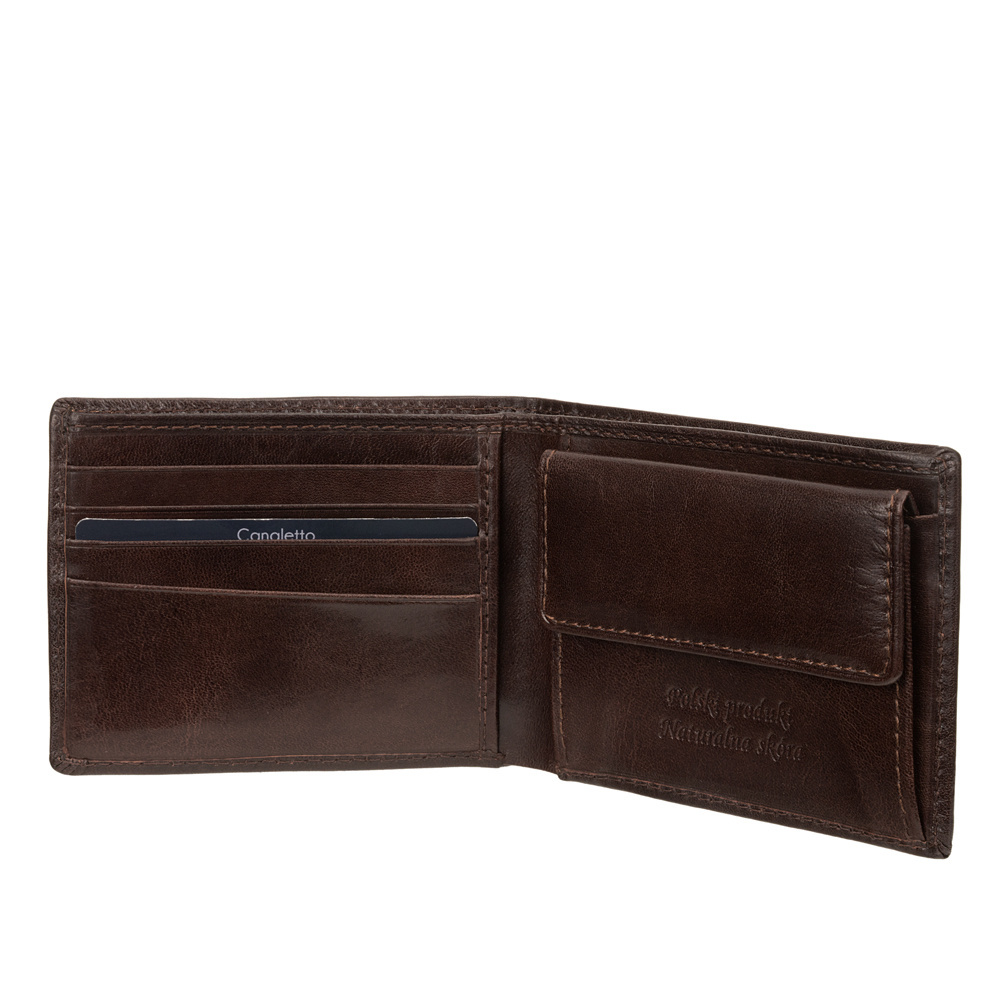 - Poznaj męski portfel Canaletto z naturalnej skóry garbowanej roślinnie. Przestrzeń na 6 kart, kieszeń na banknoty, kieszonka na drobne i ochrona RFID – prostota i funkcjonalność!
