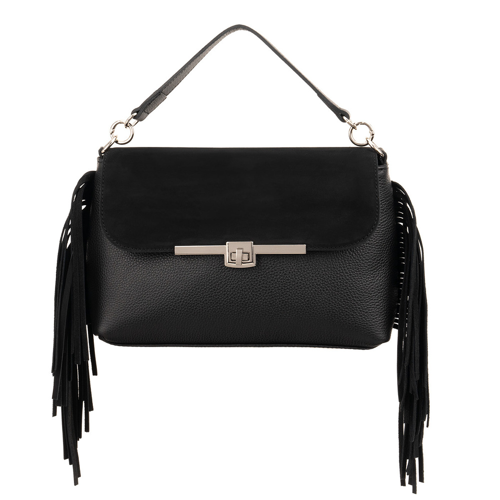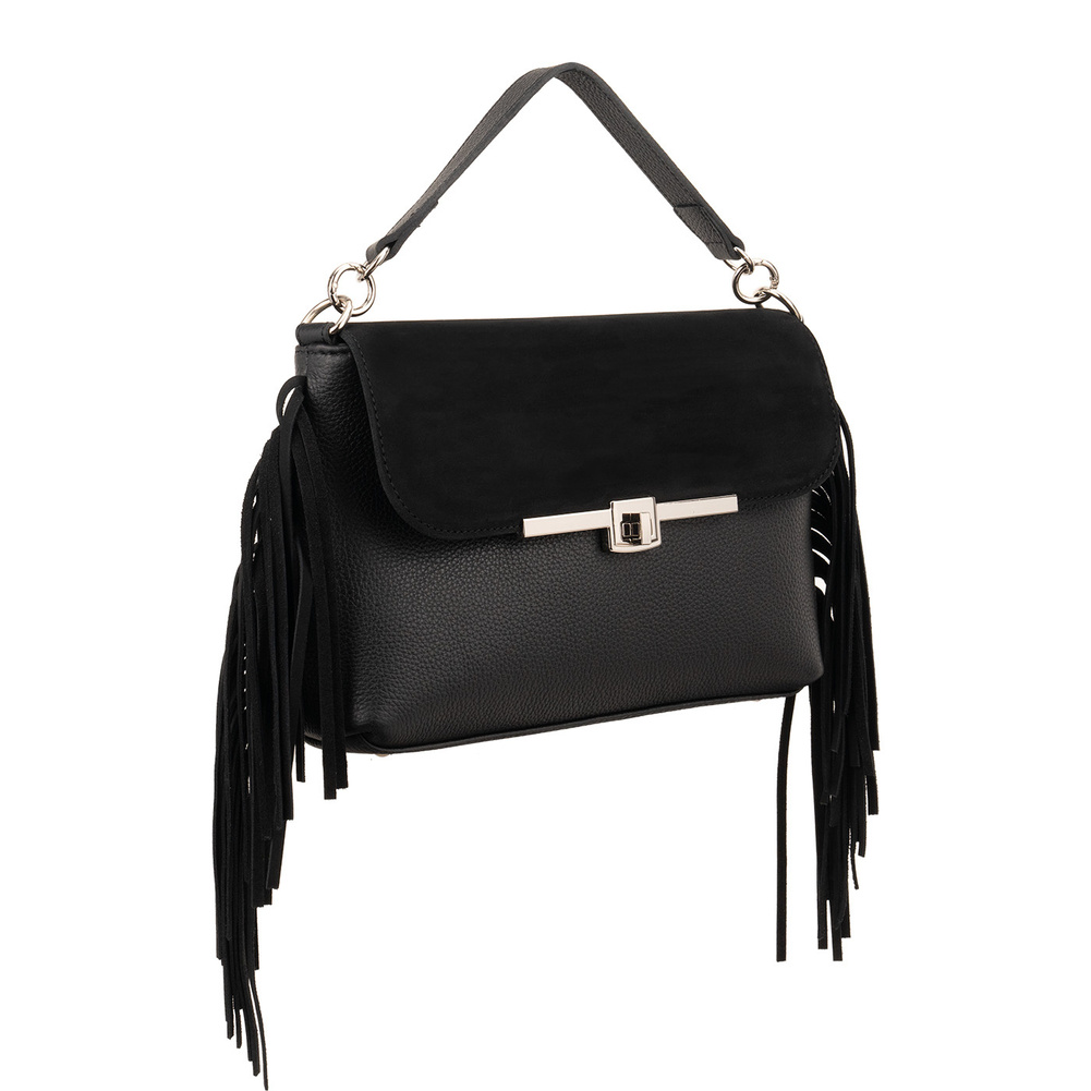 - Ekskluzywna torebka Canaletto z naturalnej skóry i welurową klapką. Ozdobne frędzle po bokach, regulowany pasek, dodatkowa kieszeń i srebrne wykończenia. Polski produkt najwyższej jakości!