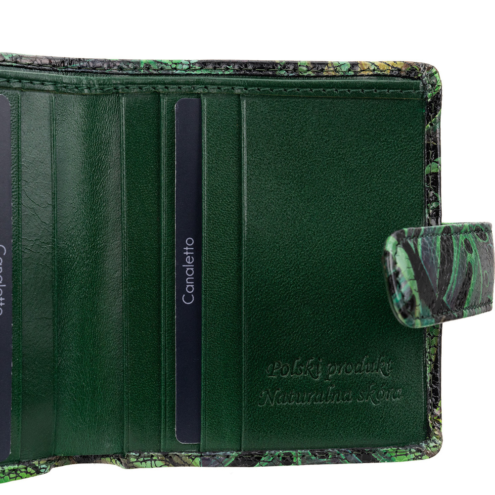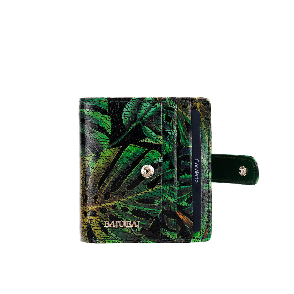 - Zielony portfel damski BajuBaj z naturalnej skóry licowej. 9 miejsc na karty, przegroda na banknoty, kieszonka na bilon i kompaktowy rozmiar. Polski produkt, ręcznie wykonany z dbałością o detale – funkcjonalność i styl w jednym!