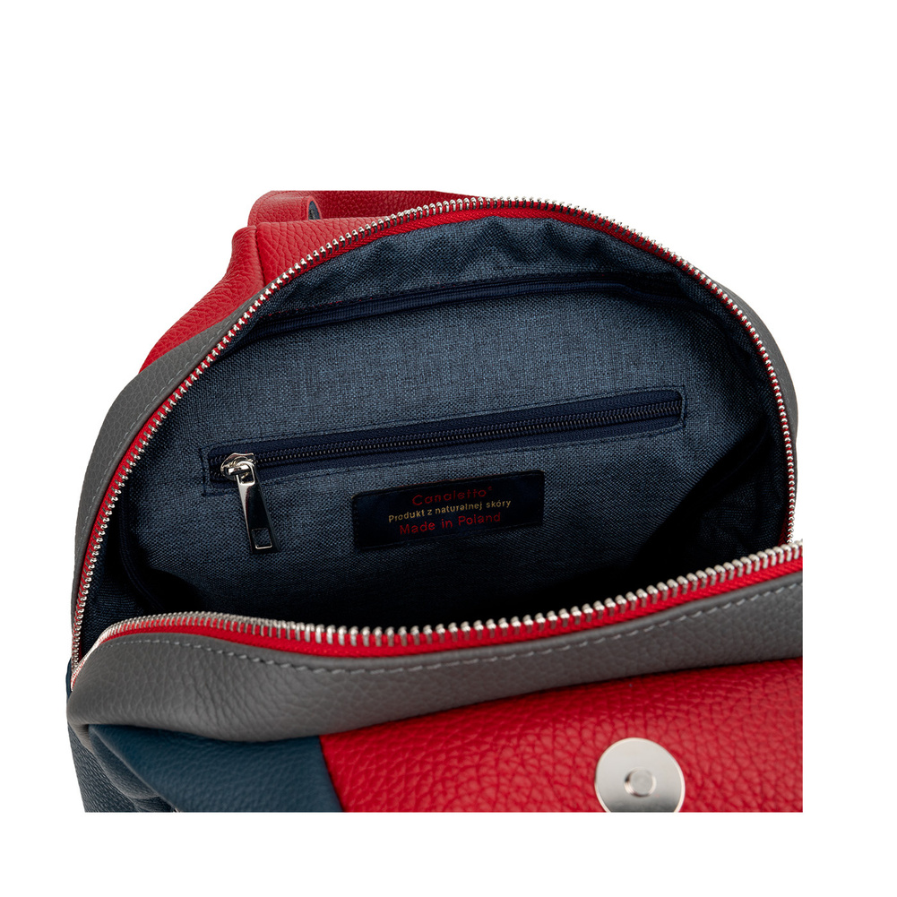 Wyjątkowy plecak skórzany Canaletto to doskonała alternatywa dla klasycznej torebki. Dzięki wielokolorowej kompozycji skóry naturalnej licowej, wyróżnia się oryginalnym stylem i przyciąga uwagę, zachowując jednocześnie elegancki charakter. Świetnie sprawdzi się zarówno podczas codziennych wyjść na miasto, zakupów, jak i w pracy.