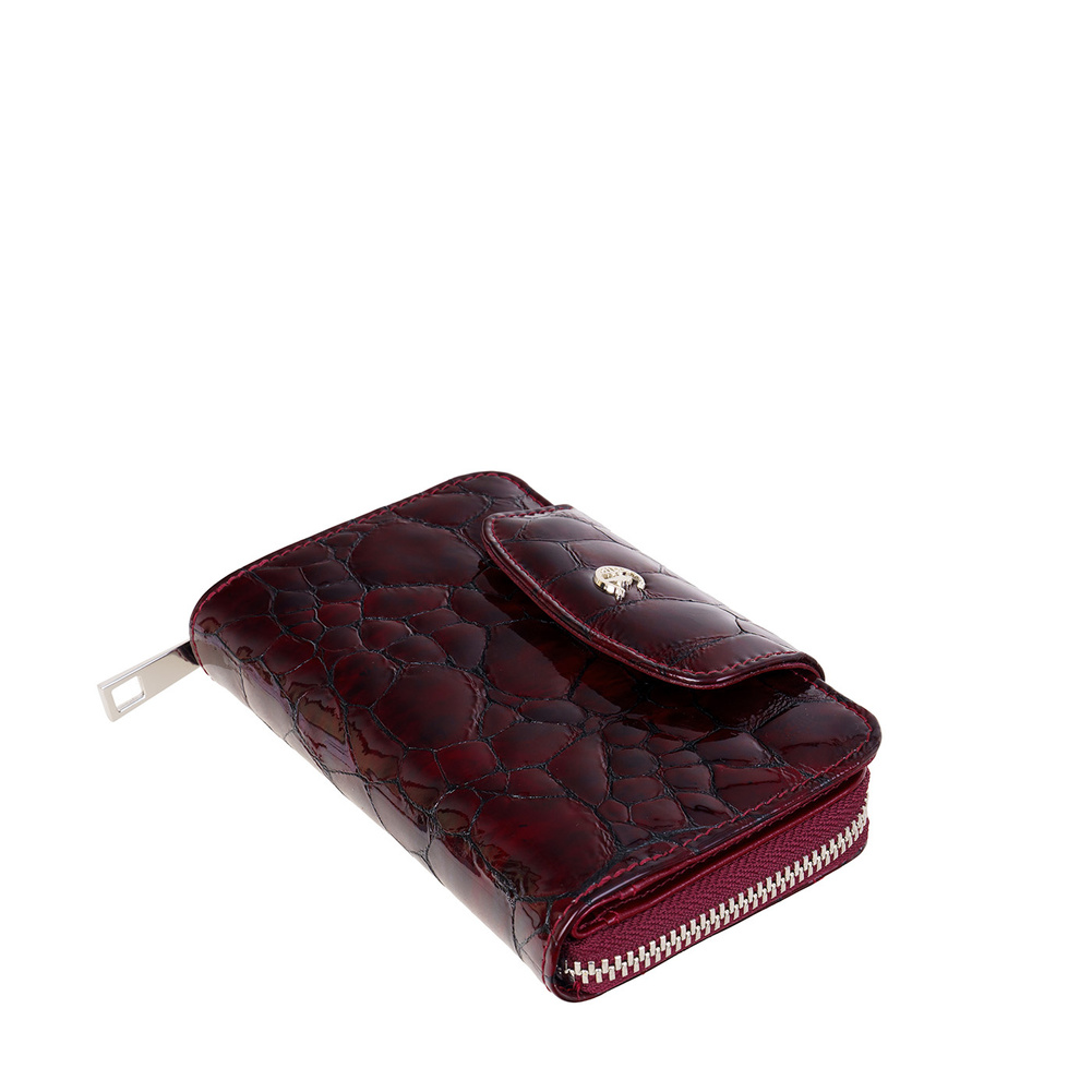 Damski portfel skórzany Canaletto – bordowa skóra lakierowana z zabezpieczeniem RFID