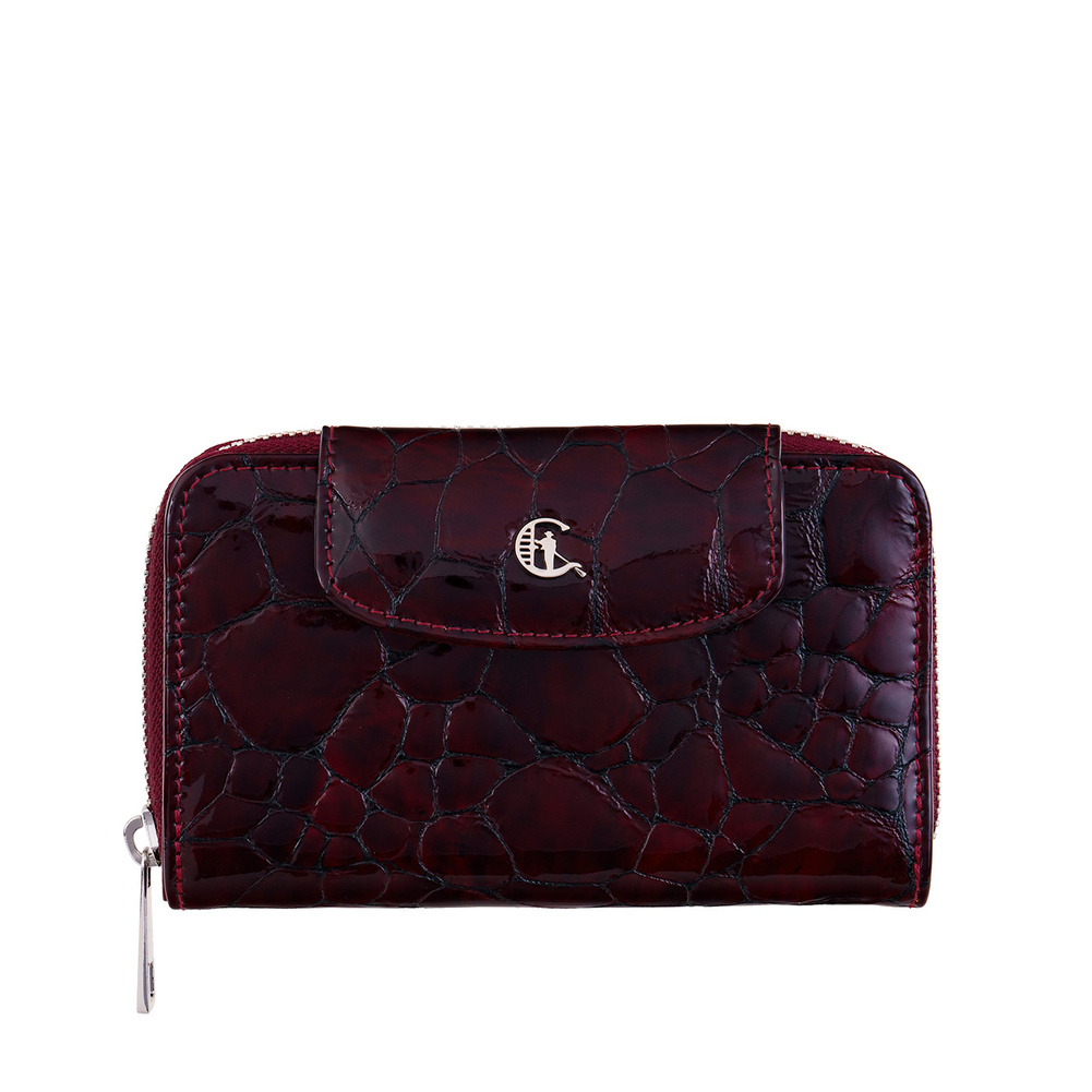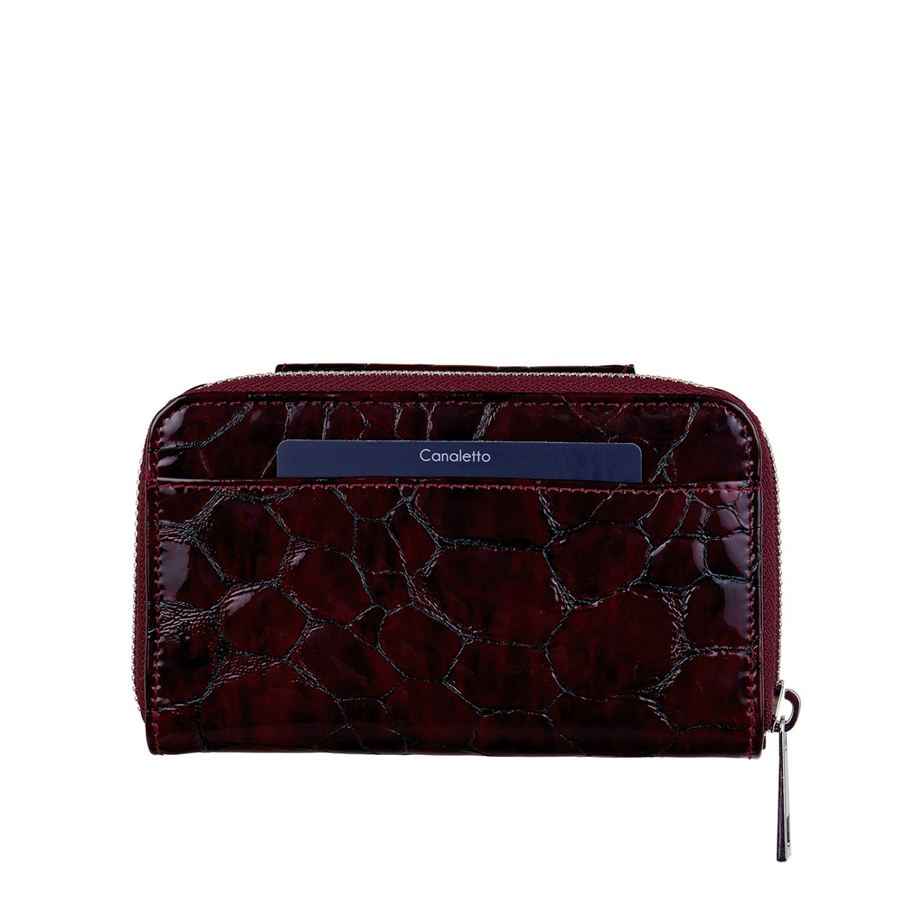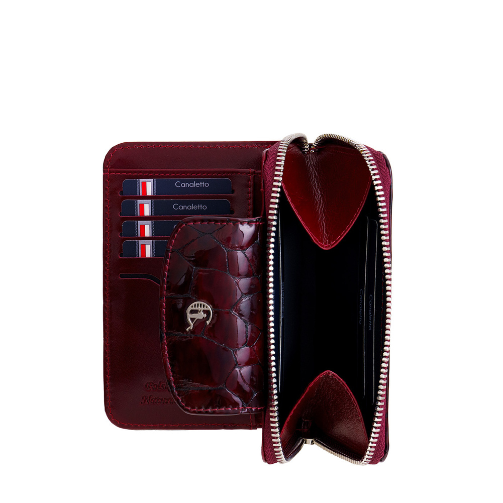 - Ekskluzywny portfel damski z bordowej skóry lakierowanej Canaletto z zabezpieczeniem RFID. 15 przegródek, kieszeń na bilon i elegancki design. Idealny na prezent!