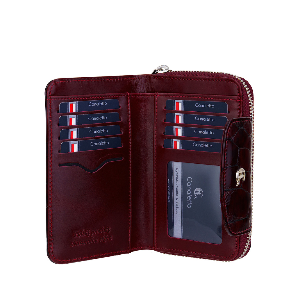 Damski portfel Canaletto to idealne połączenie praktyczności i elegancji. Starannie zaprojektowane wnętrze zapewnia doskonałą organizację: