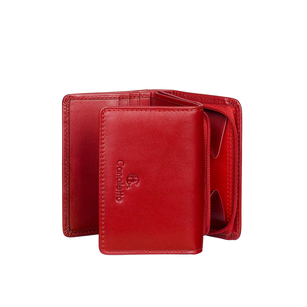 - Elegancki czerwony portfel damski Canaletto z naturalnej skóry licowej. Ponad osiem przegródek, kieszeń na monety, klasyczny design. Produkt najwyższej jakości!
