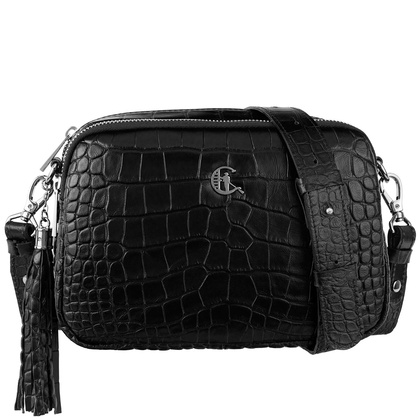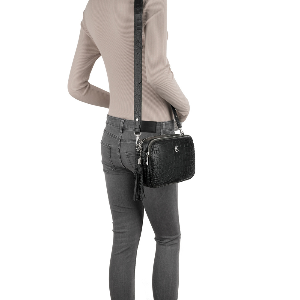 - Stylowa listonoszka damska Canaletto z naturalnej skóry tłoczonej na wzór krokodyla. Dwie komory na suwak, regulowany pasek i ozdobny frędzel. Polski produkt najwyższej jakości!