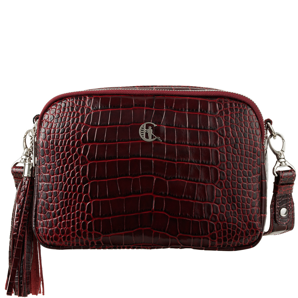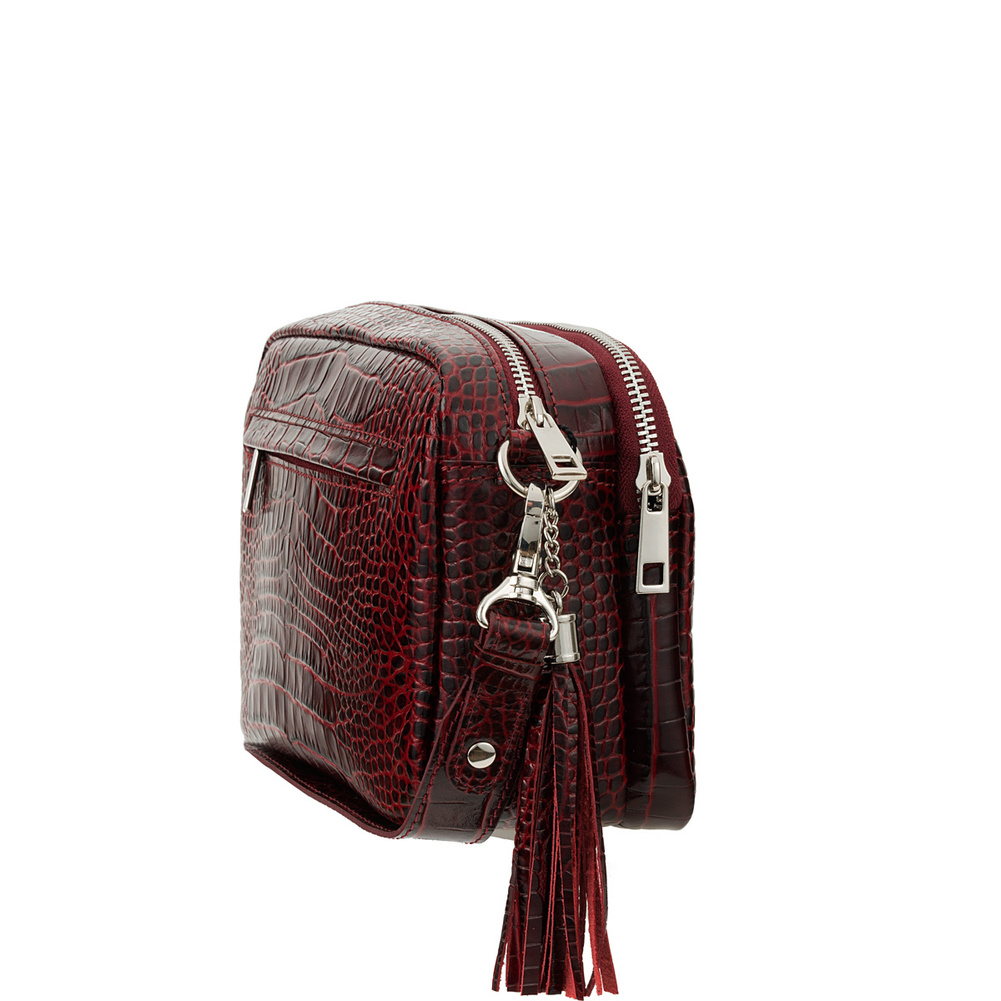 - Stylowa listonoszka damska Canaletto z naturalnej skóry tłoczonej na wzór krokodyla. Dwie komory na suwak, regulowany pasek i ozdobny frędzel. Polski produkt najwyższej jakości!