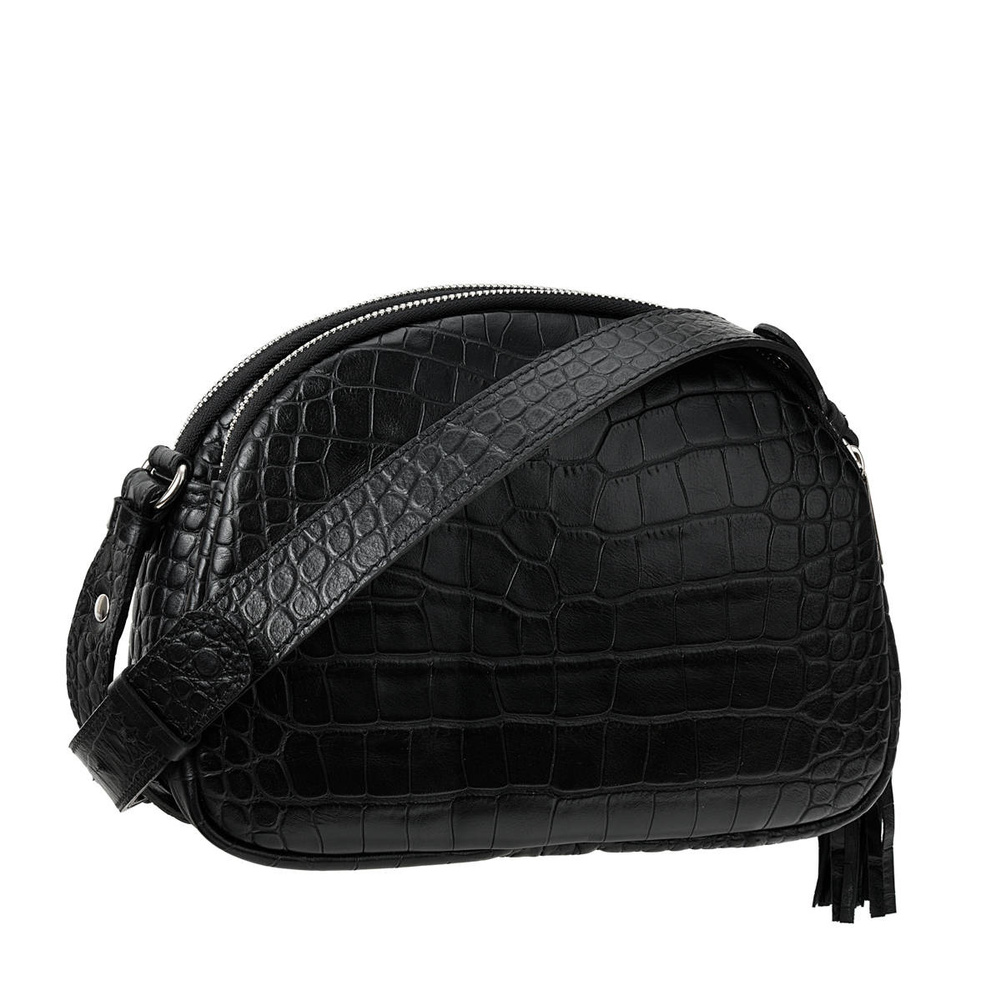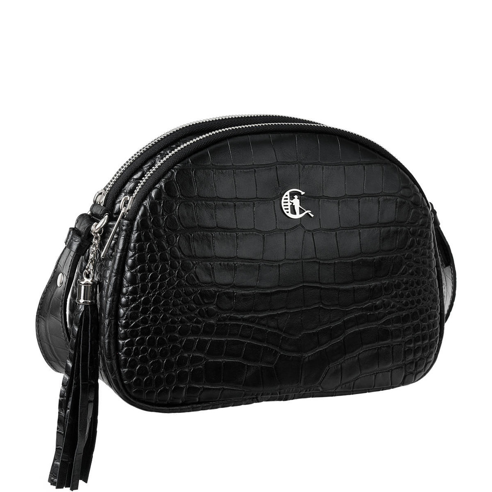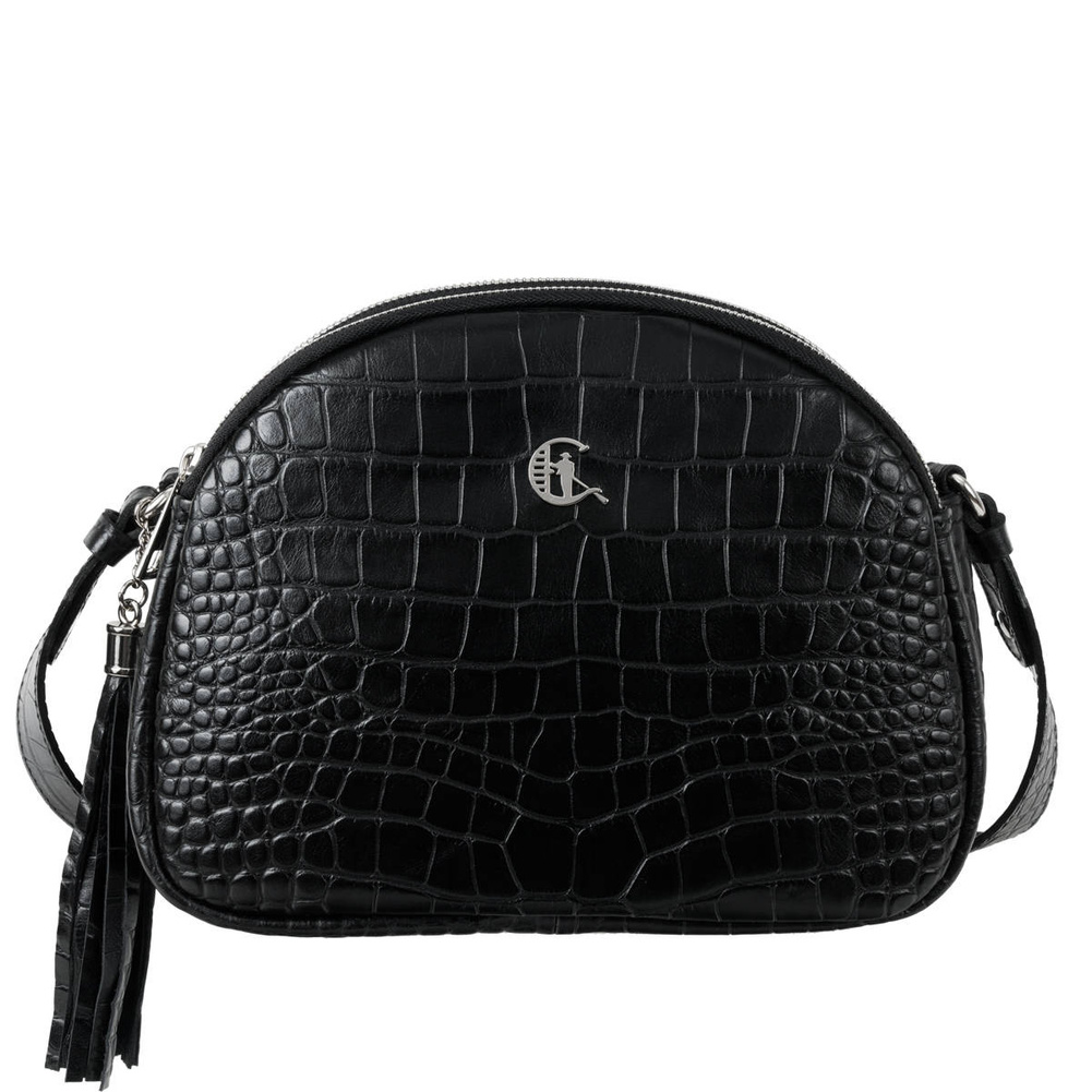 - Czarna torebka Canaletto wykonana z naturalnej skóry tłoczonej na wzór krokodyla. Trzy komory, regulowany pasek i eleganckie detale. Polski produkt najwyższej jakości!
