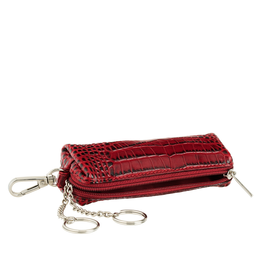 - Luksusowe etui na klucze Canaletto z czerwonej skóry tłoczonej na wzór krokodyla. Dwa breloki, karabińczyk, kieszonka na suwak i sygnatura marki. Polski produkt najwyższej jakości!