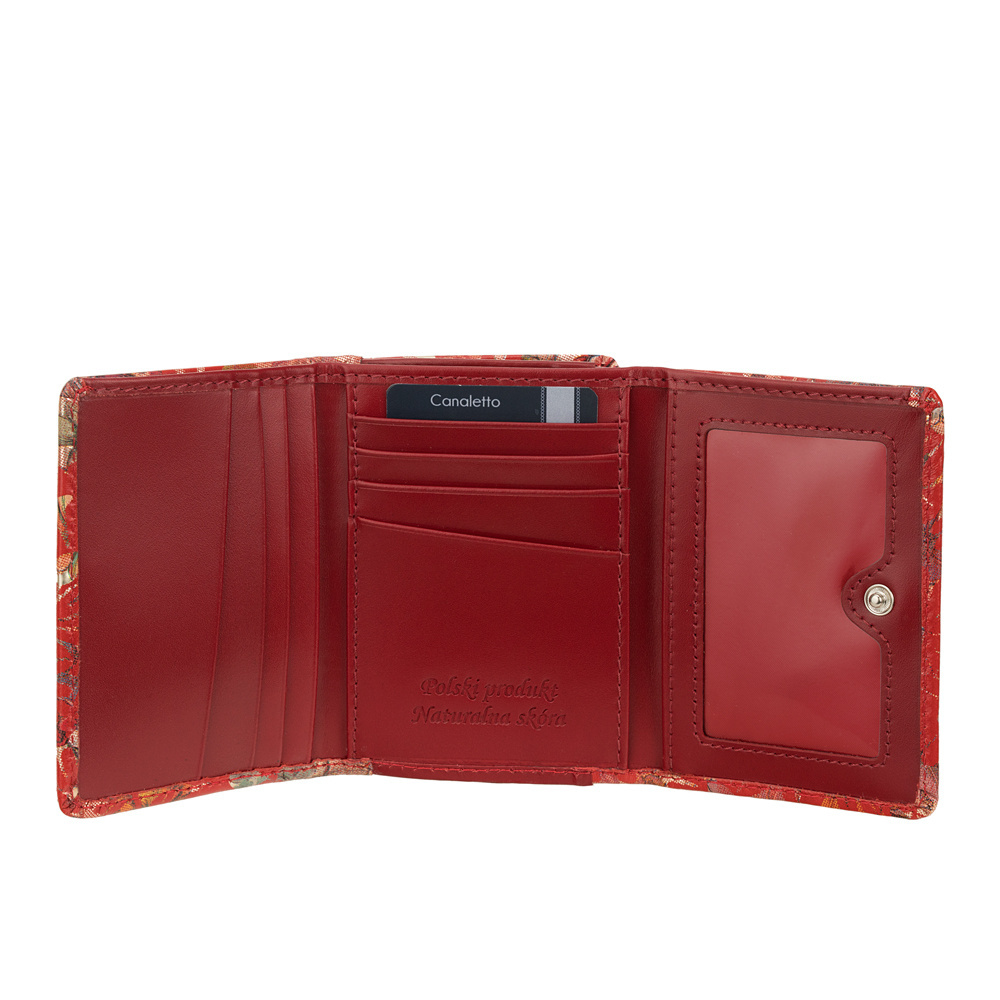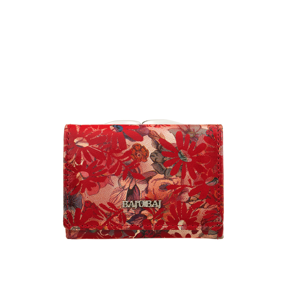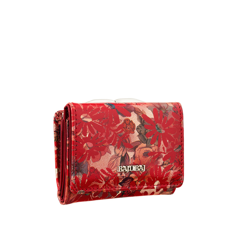 - Stylowy portfel damski BajuBaj z naturalnej czerwonej skóry z zabezpieczeniem RFID. Ponad osiem przegródek na karty, kieszeń na monety z klasycznym zapięciem, elegancki design. Polski produkt najwyższej jakości!