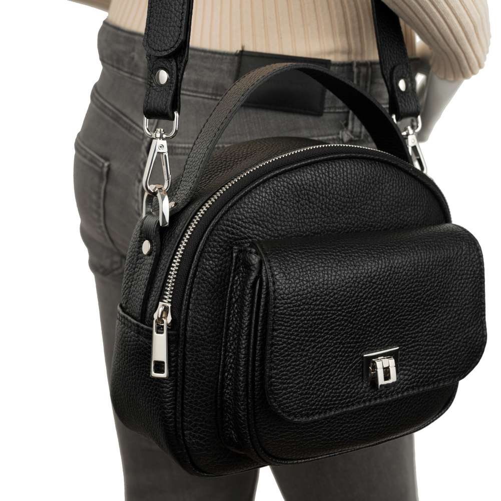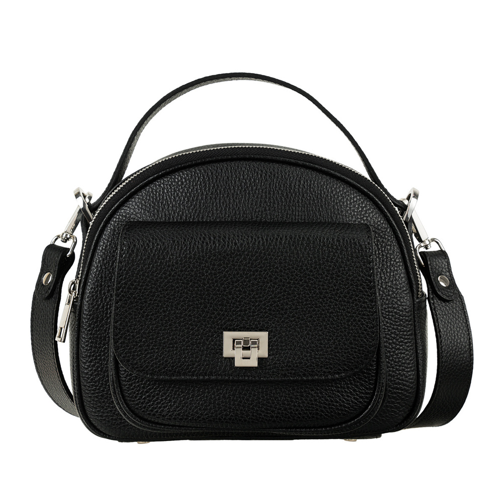 - Solidną, skórzaną rączkę – umożliwia noszenie torebki w dłoni, co nadaje klasycznego wyglądu.