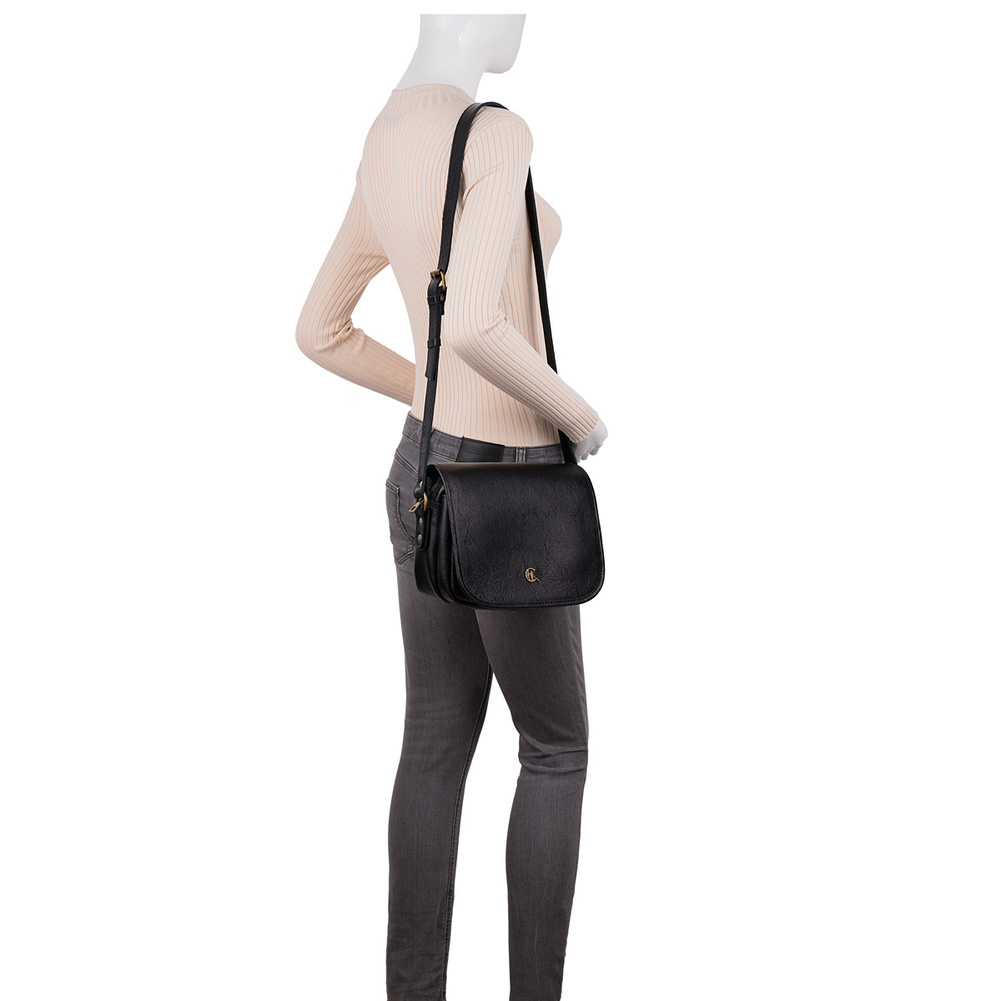 Prosty, klasyczny design torebki został uzupełniony wykończeniami w stylu starego złota, które dodają jej elegancji. Regulowany pasek sprawia, że torebkę możesz nosić na ramieniu lub w stylu crossbody, zapewniając sobie wygodę i swobodę ruchu.