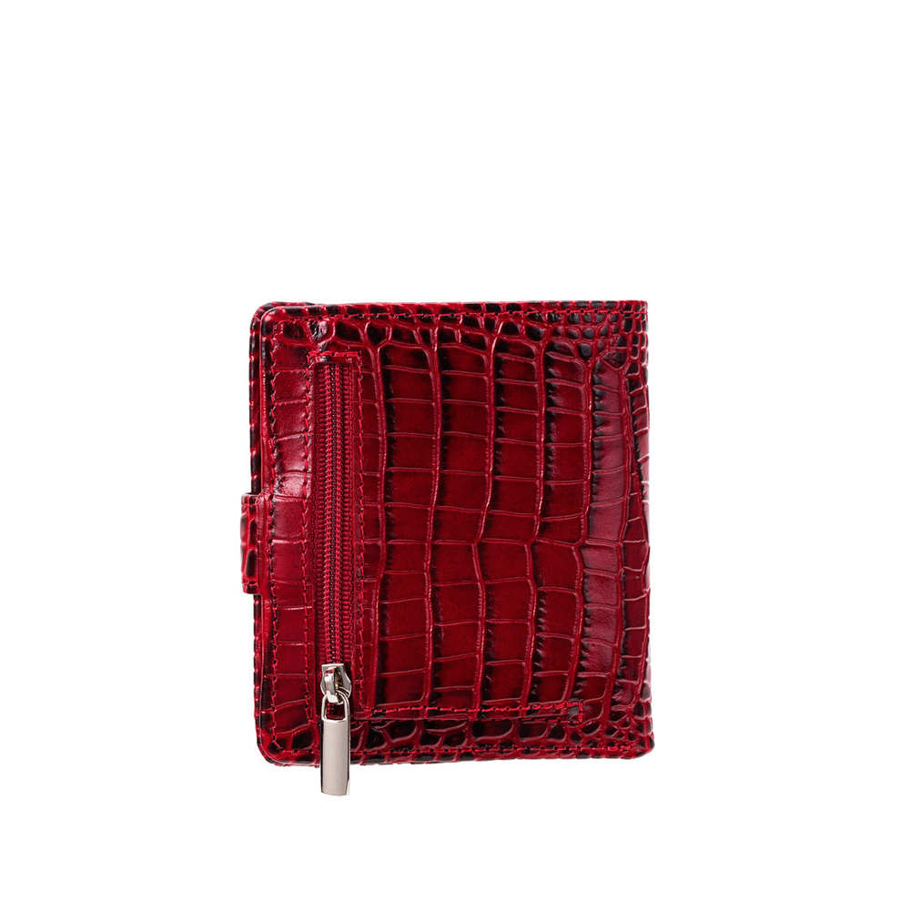 - Elegancki portfel damski Canaletto z naturalnej skóry licowej o fakturze krokodyla w bordowym kolorze. 9 miejsc na karty, przegroda na banknoty, kieszonka na bilon. Polski produkt, trwały i stylowy – idealny do małych torebek!
