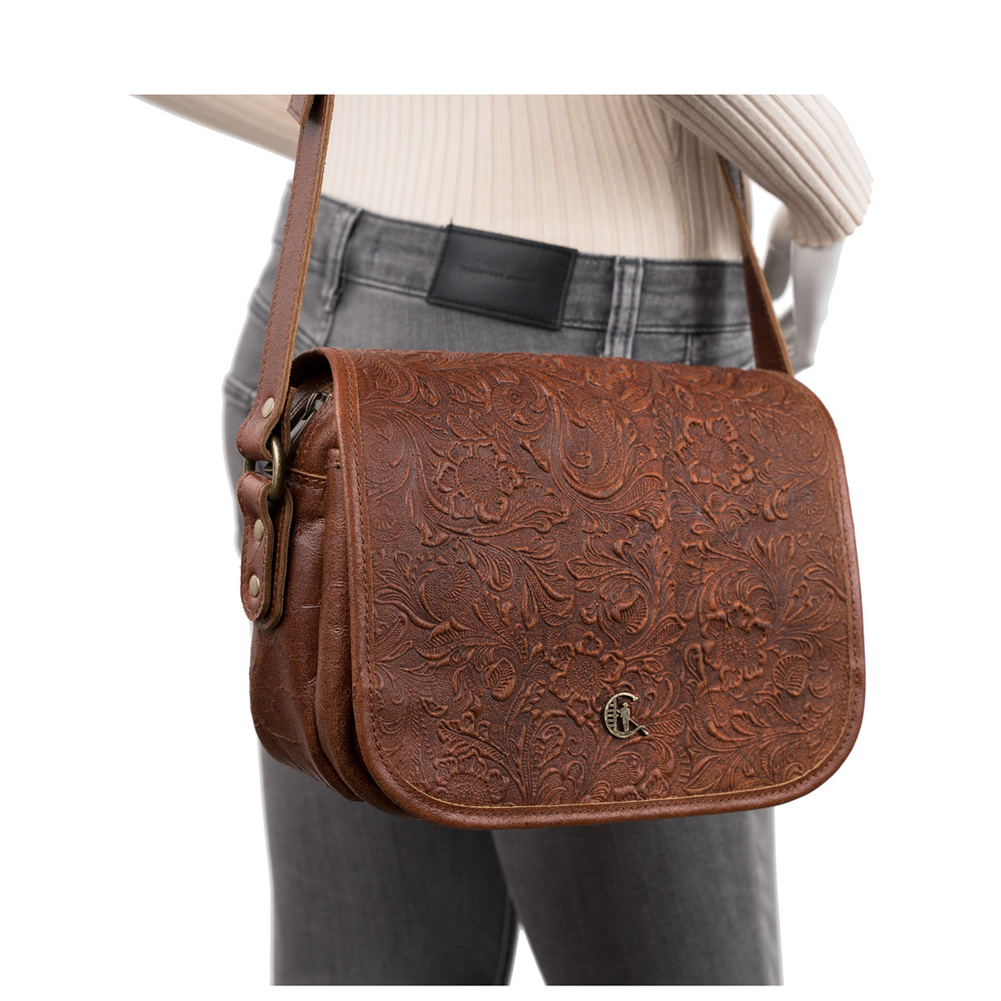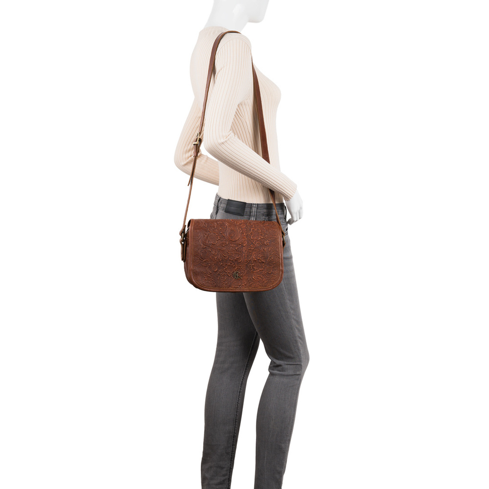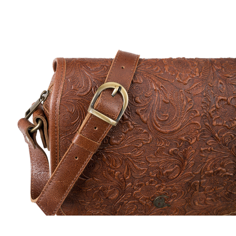 Torebka wykonana jest z wysokiej jakości skóry naturalnej, która zachwyca swoją unikalną fakturą i wyjątkowym charakterem. Dzięki temu każda sztuka jest jedyna w swoim rodzaju – prawdziwe dzieło sztuki kaletniczej. Klapka z subtelnym tłoczeniem dodaje jej elegancji i unikalnego wyrazu, wyróżniając torebkę na tle innych.