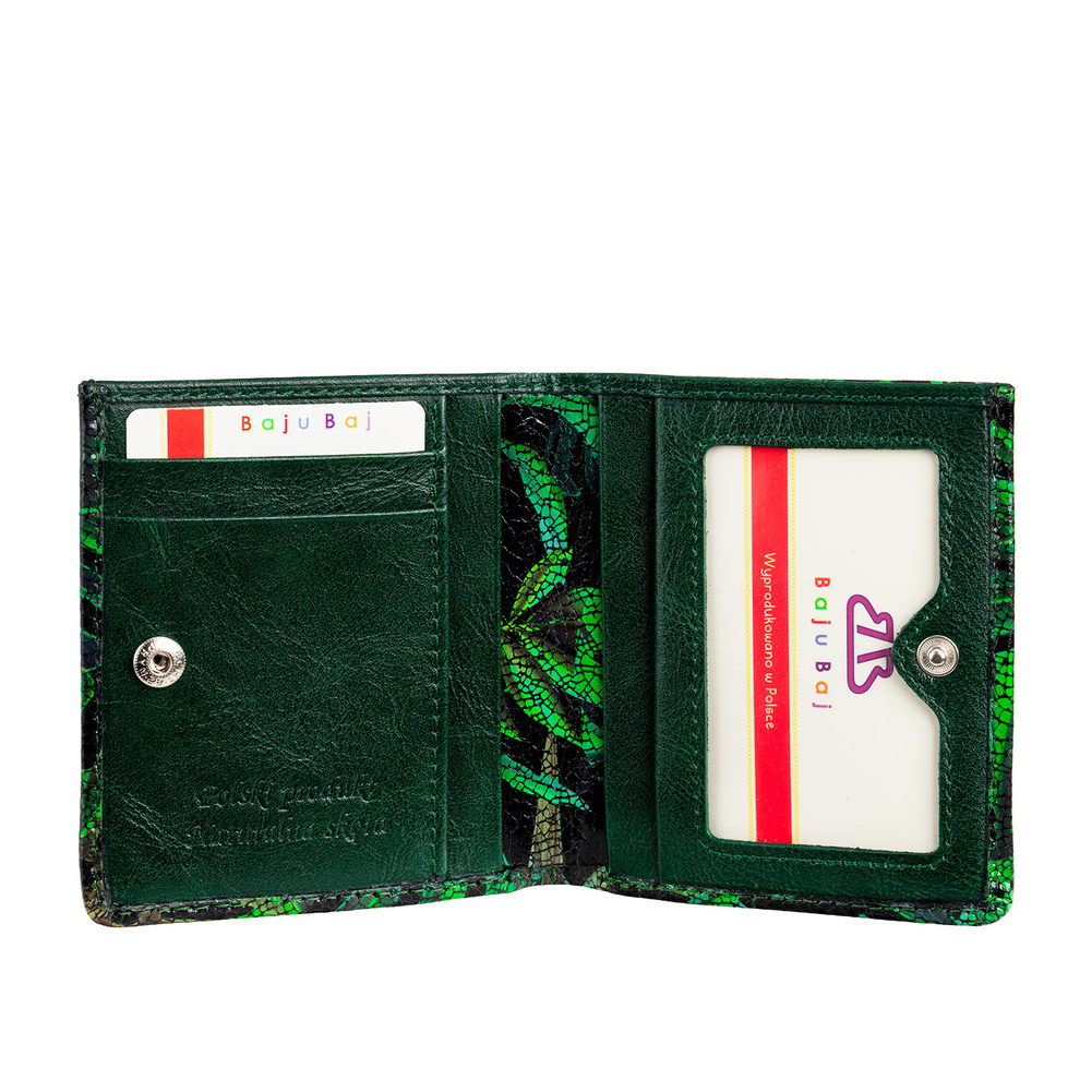 - Stylowy portfel damski BajuBaj z naturalnej kolorowej skóry. Około 6 miejsc na karty, kieszeń na banknoty, oryginalna kieszonka na drobne i bezpieczne zapięcie. Polski produkt najwyższej jakości!