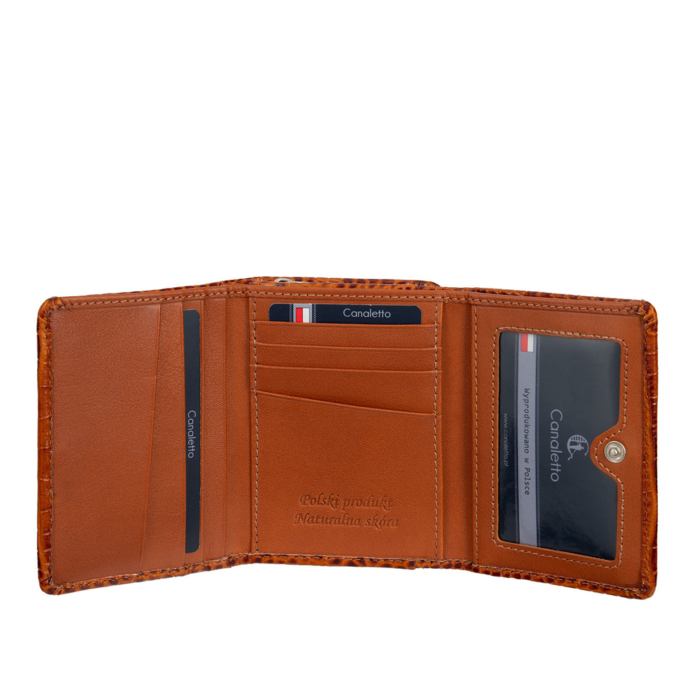 - Elegancki portfel damski Canaletto z naturalnej skóry tłoczonej na wzór krokodyla. Ponad osiem przegródek, kieszeń na monety, technologia RFID. Polski produkt najwyższej jakości!