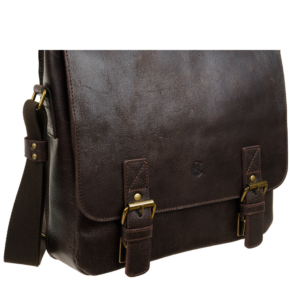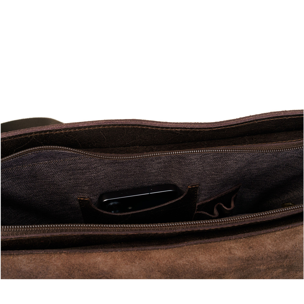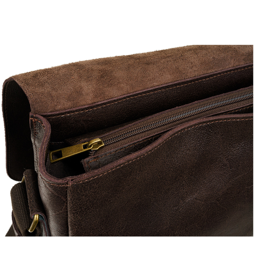 Torba wykonana została z wysokiej jakości naturalnej skóry bydlęcej w stylu vintage, która charakteryzuje się wyjątkową strukturą i trwałością. Wykończenie retro nadaje torbie niepowtarzalny wygląd, podkreślając jej autentyczny charakter i prestiż. Dzięki starannemu wykonaniu skóra z czasem nabiera jeszcze większego uroku, co czyni torbę niezastąpionym dodatkiem na lata. Detale w kolorze starego złota dopełniają całości, dodając jej klasy i stylowego wykończenia.