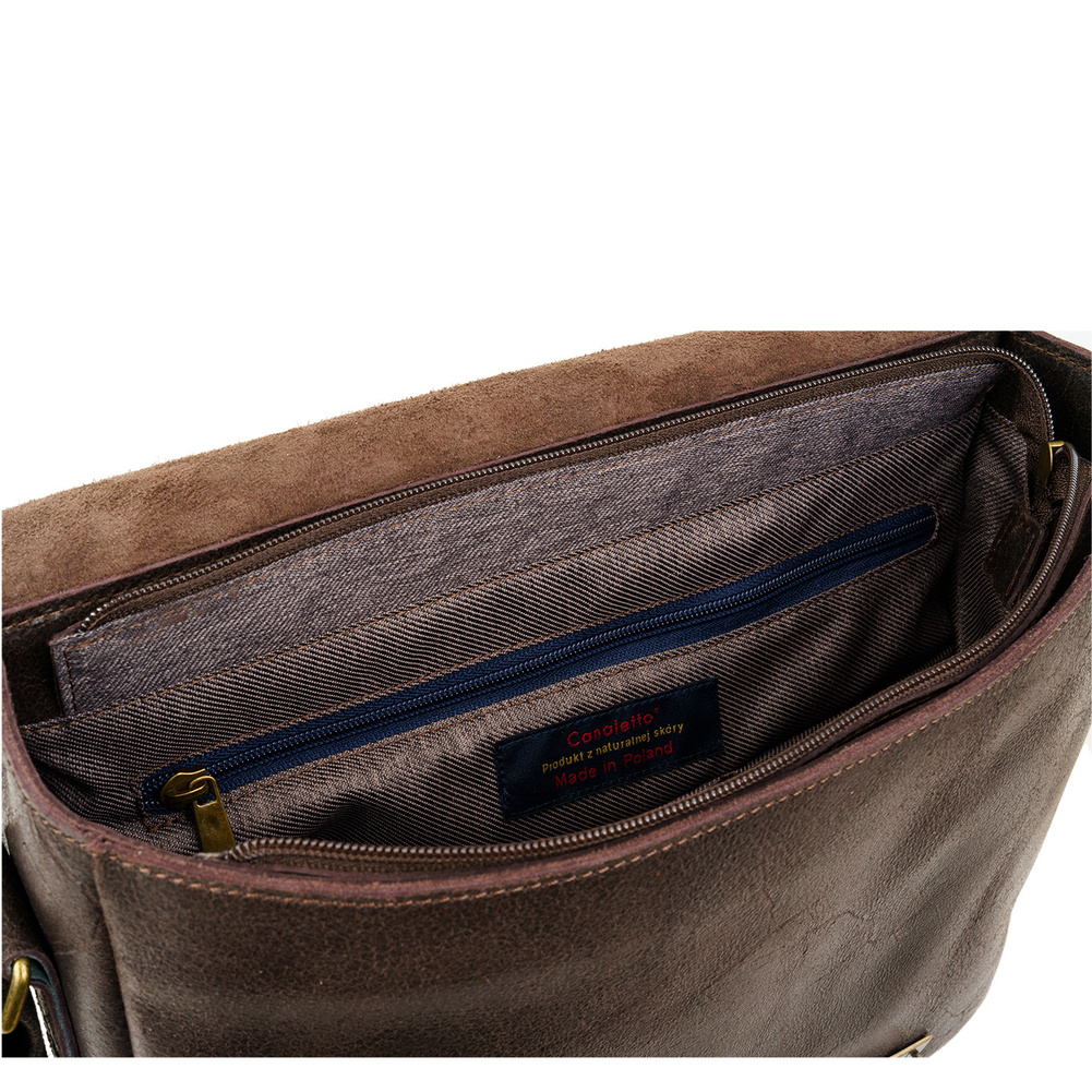 - Poznaj męską torbę Canaletto z naturalnej skóry vintage. Mieści A4, ma kieszeń na telefon, miejsce na długopisy i detale w starym złocie. Styl retro i funkcjonalność na co dzień!