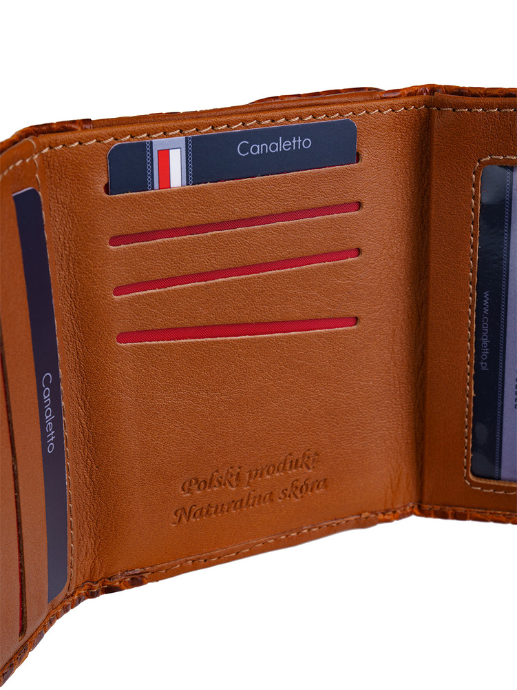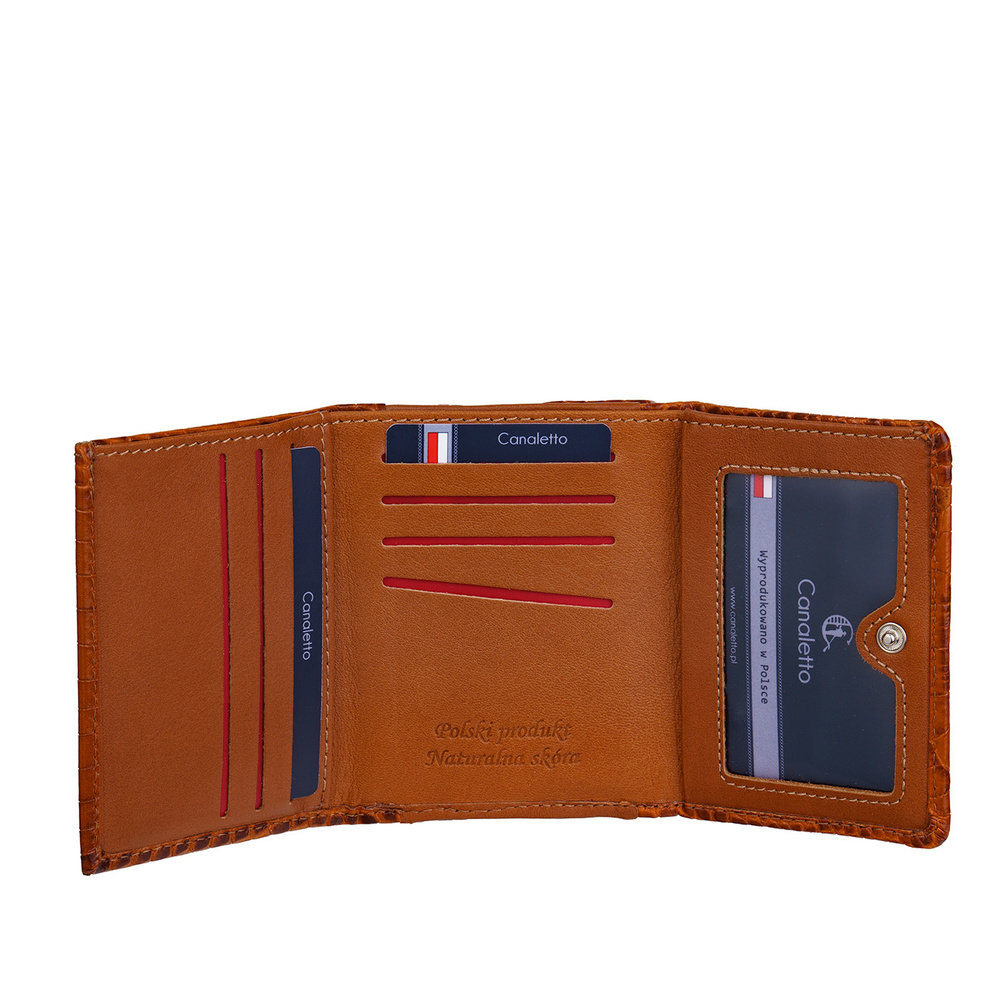 - Mały portfel damski Canaletto z naturalnej skóry tłoczonej na wzór krokodyla.