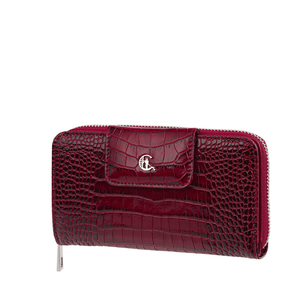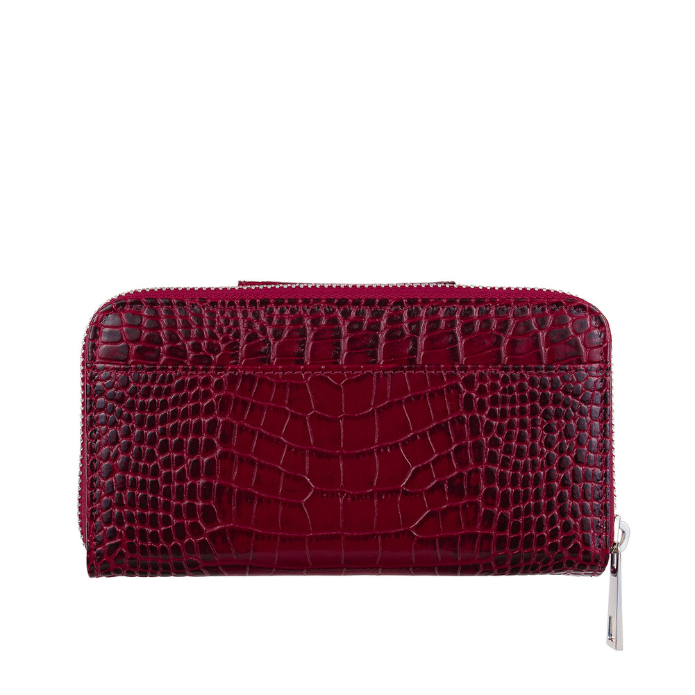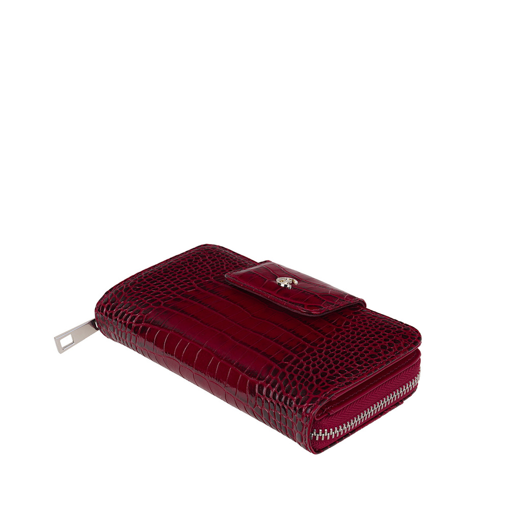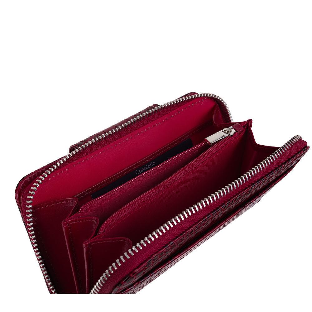 - Elegancki portfel damski Canaletto z włoskiej skóry licowej garbowanej roślinnie o wzorze krokodyla w bordowym kolorze. 15 przegródek na karty, kieszeń na monety z suwakiem i ochrona RFID. Luksus, styl i funkcjonalność w jednym.