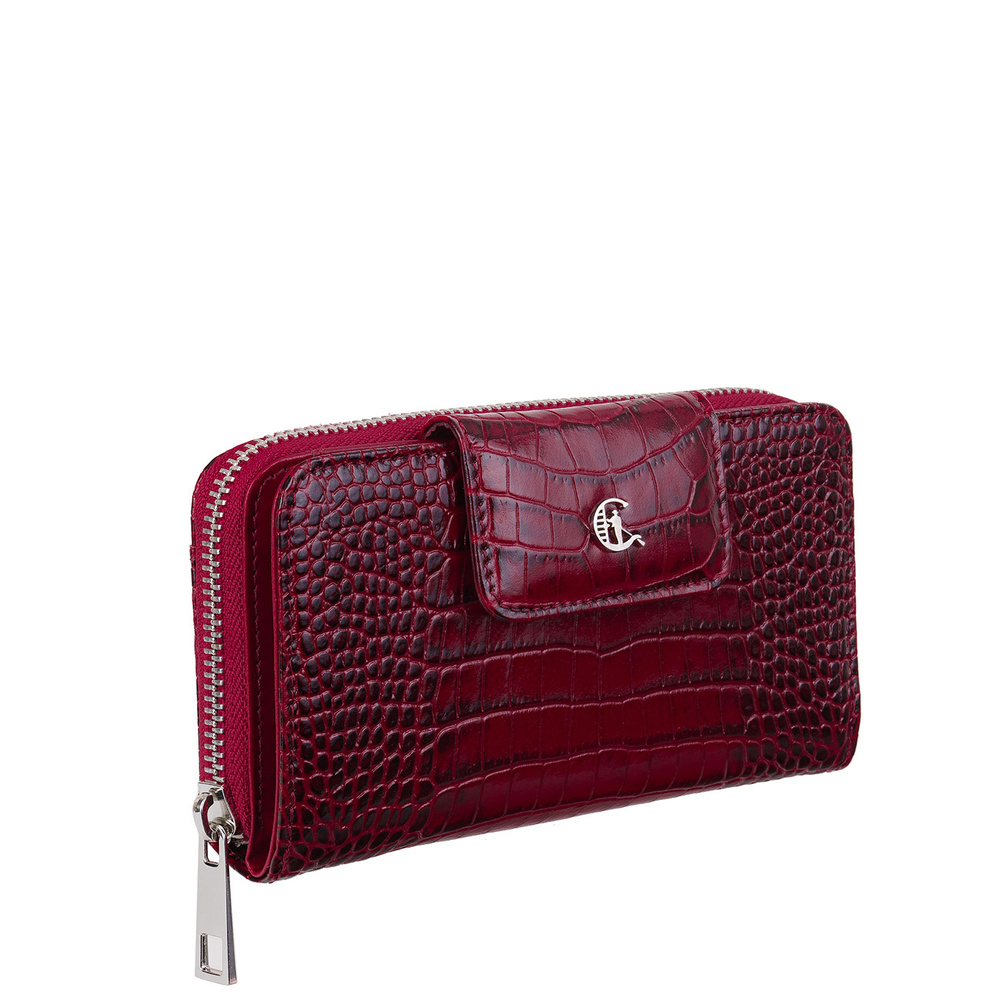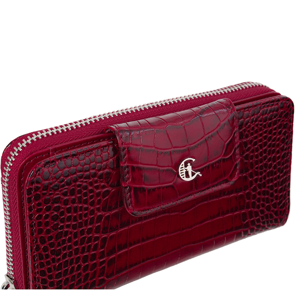 Damski portfel skórzany z suwakiem Canaletto croco bordowy PD2006s162 RFID