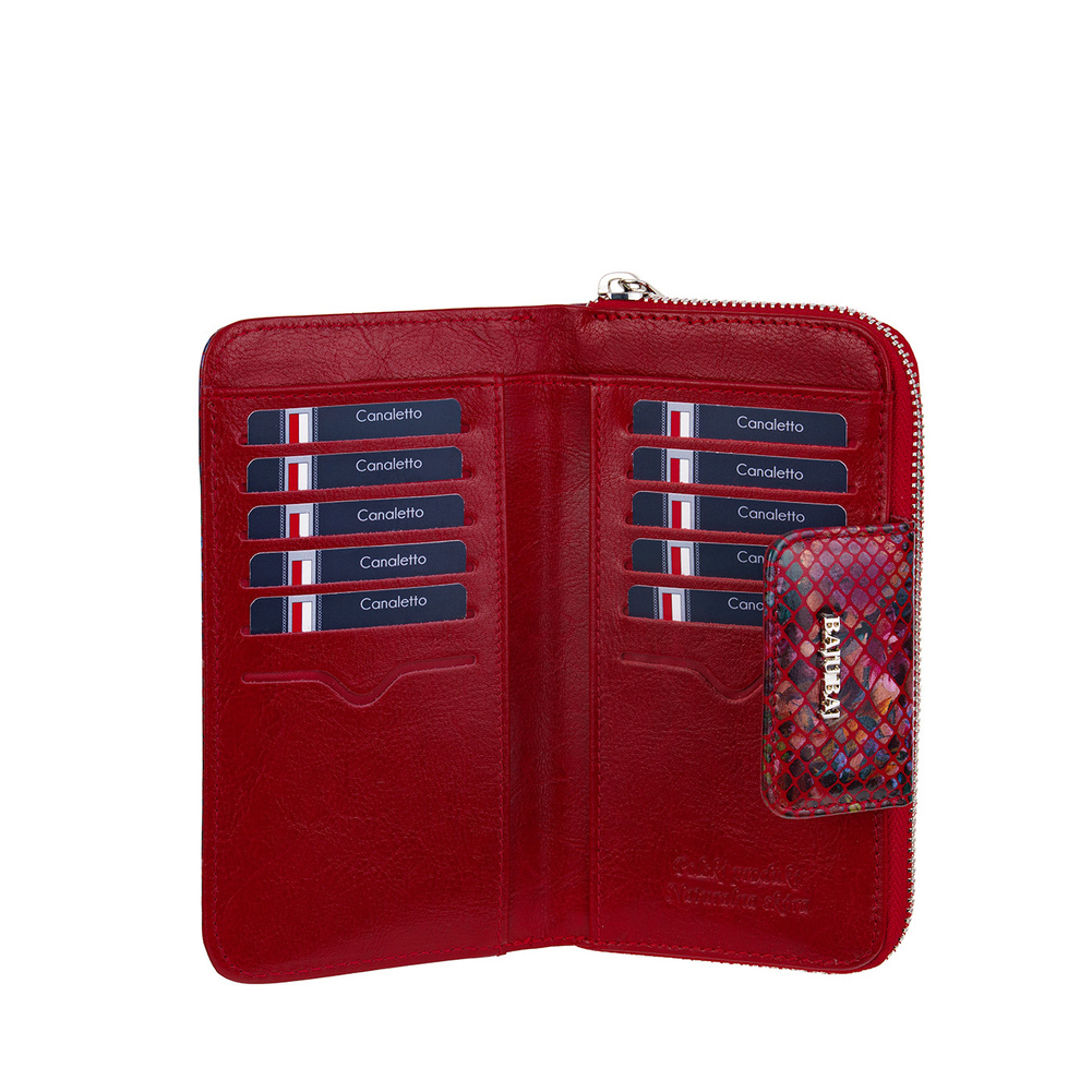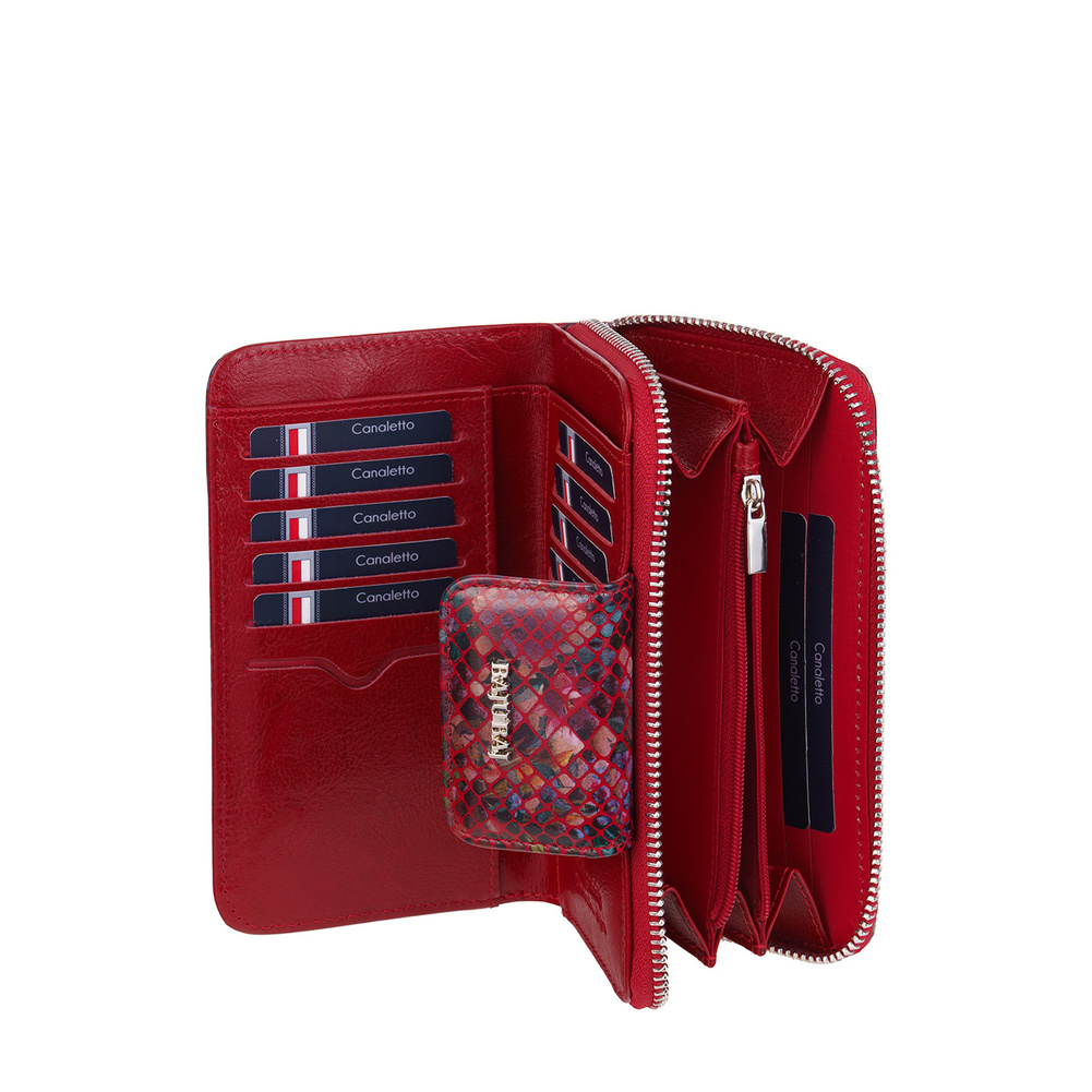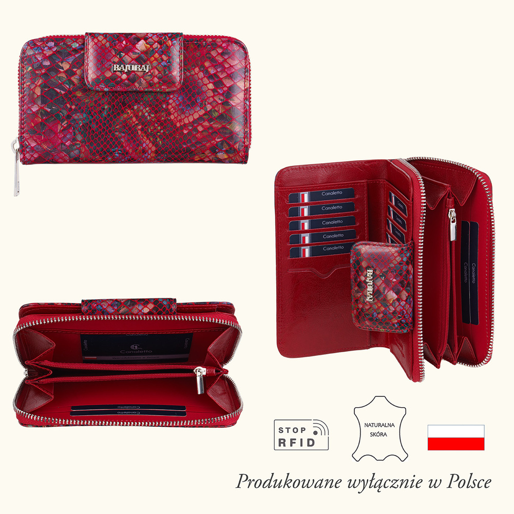 - Czerwony portfel damski BajuBaj z naturalnej skóry licowej. 15 przegródek, kieszeń na monety, zabezpieczenie RFID. Stylowy, praktyczny i trwały – idealny na prezent!