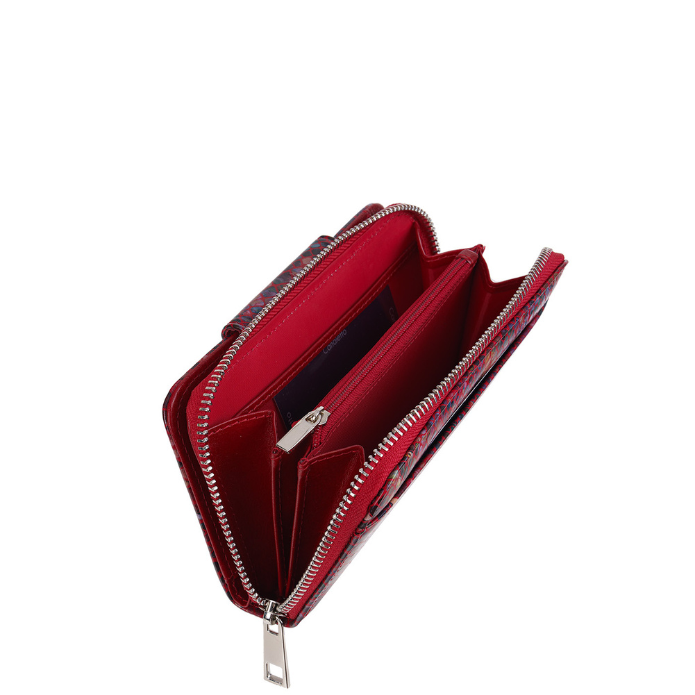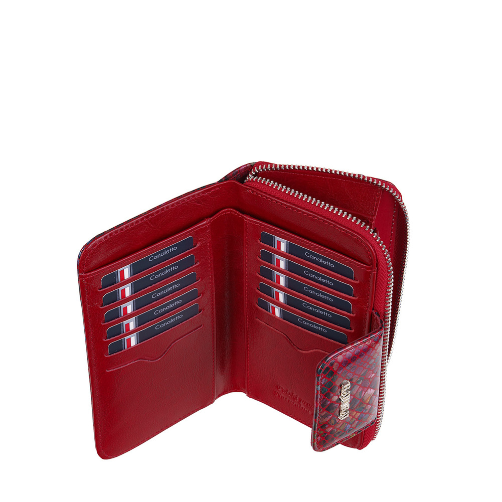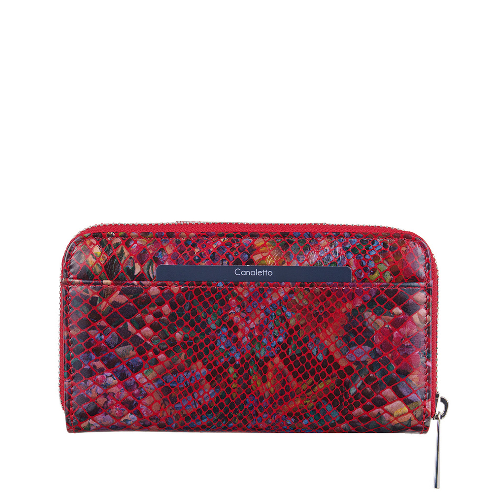 Portfel wykonano z naturalnej skóry licowej, która charakteryzuje się trwałością, odpornością na codzienne użytkowanie oraz pięknym, kolorowym wykończeniem. Wielobarwna kompozycja sprawia, że portfel wyróżnia się na tle innych modeli i wnosi odrobinę radości do codziennych stylizacji.