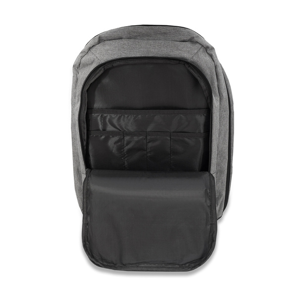 Wyposażony w główną komorę oraz przednią kieszeń zamykaną na zamek błyskawiczny.